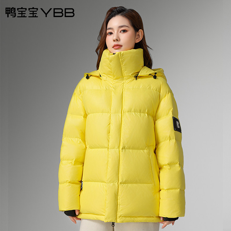鸭鸭2025秋冬新款立领短款羽绒服小个子女冬多巴胺连帽可拆帽外套