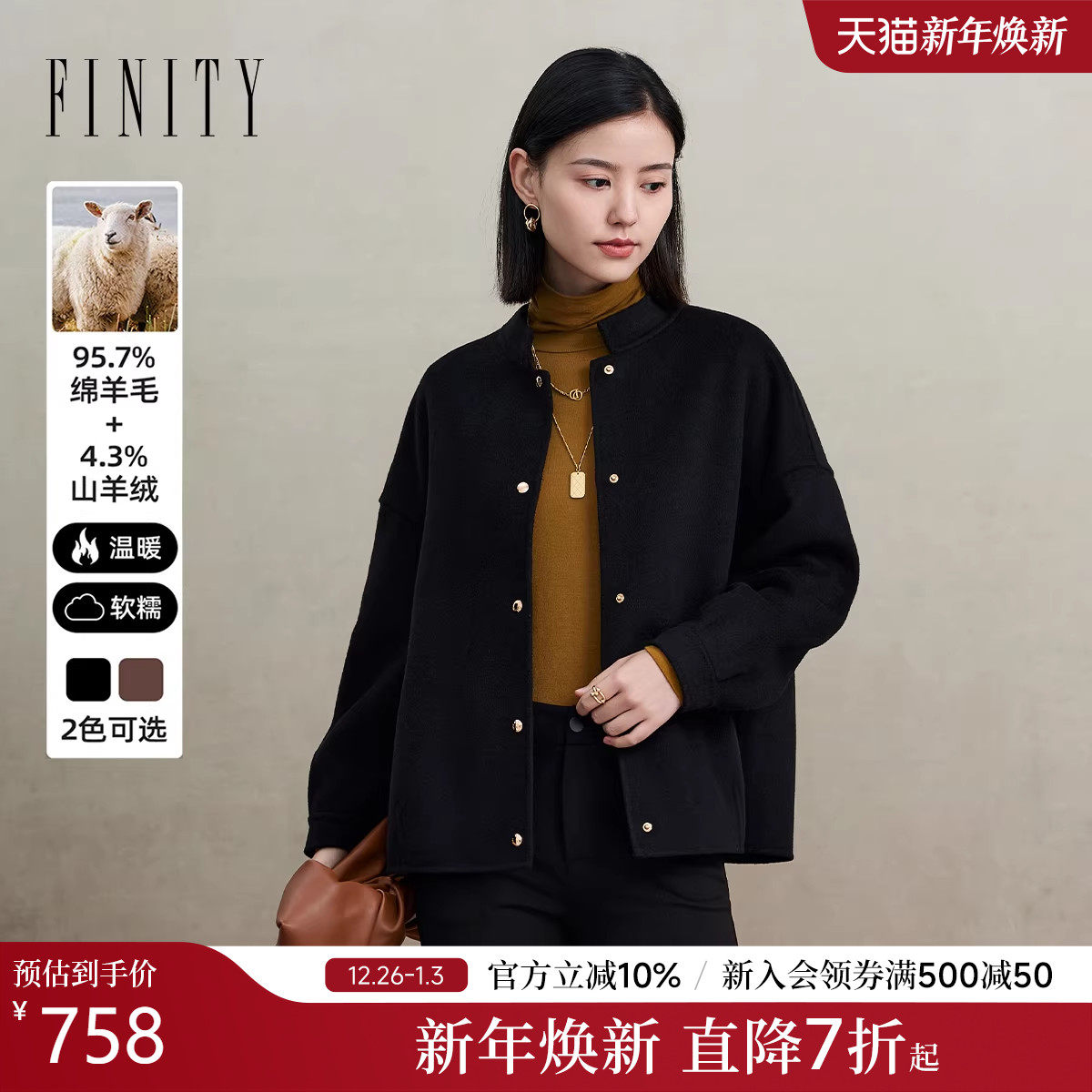 菲妮迪品牌小个子毛呢外套2025冬新款羊毛时尚通勤短款羊绒大衣