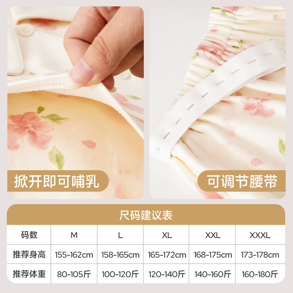 凉感莫代尔带胸垫月子服春夏季薄款产前产后春秋孕妇哺乳喂奶睡衣