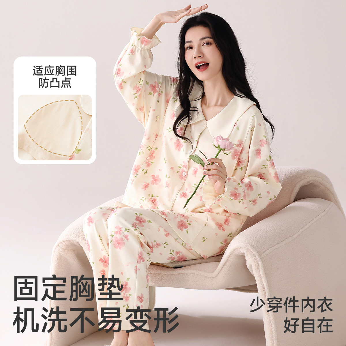 春秋季云感棉带胸垫月子服产后产妇秋冬12月份孕妇哺乳睡衣家居服