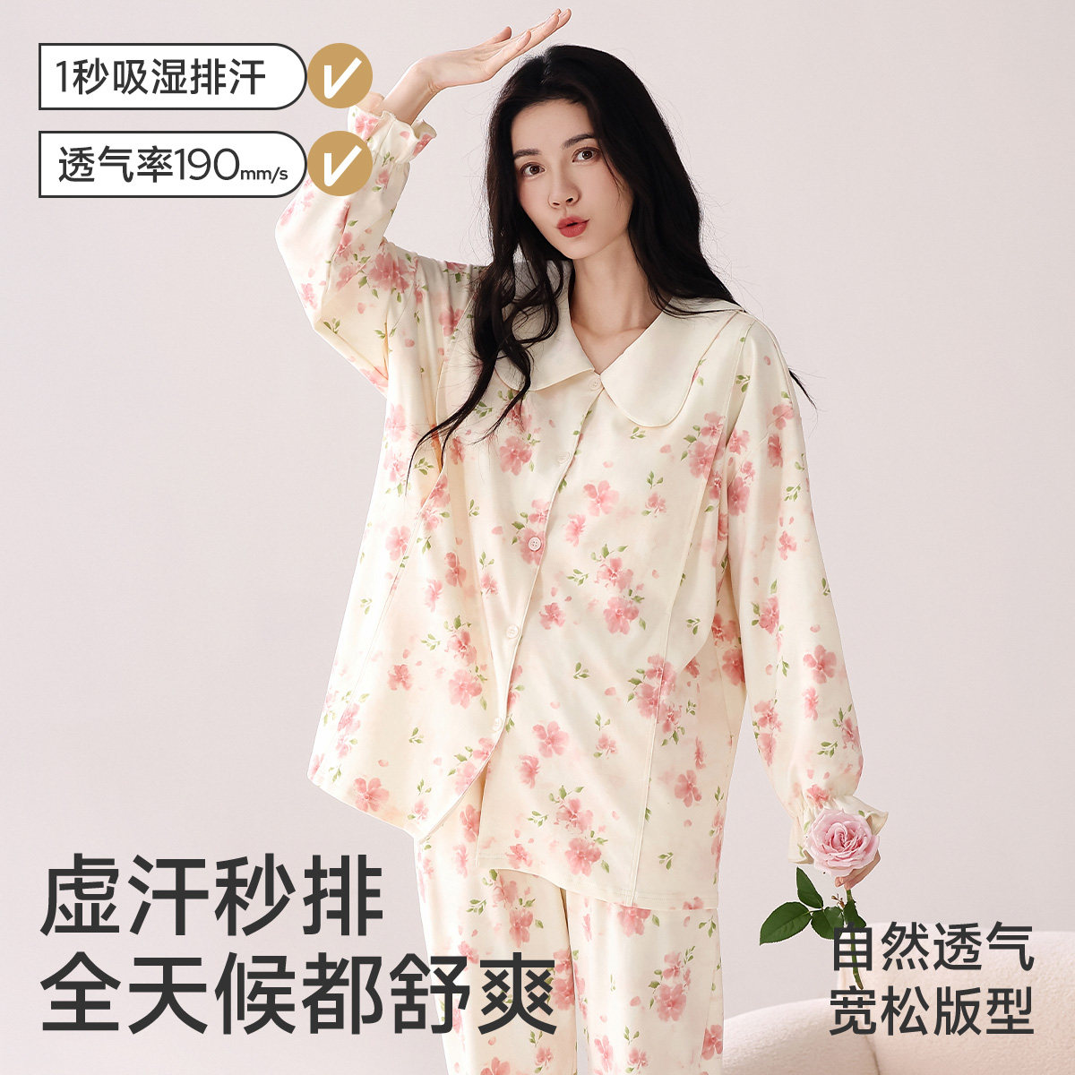 空气棉月子服秋冬季纯棉产后12月份全棉吸汗喂奶产妇哺乳孕妇睡衣