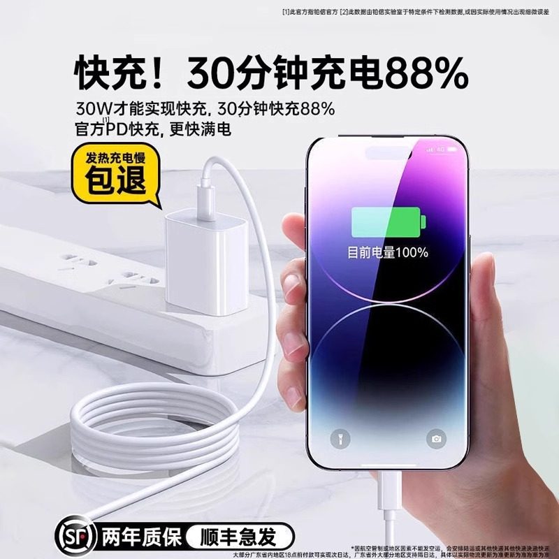 30W快充适用苹果充电器iPhone14充电头16promax快充线15数据线typec13平板ipad手机PD正品闪充2plus套装
