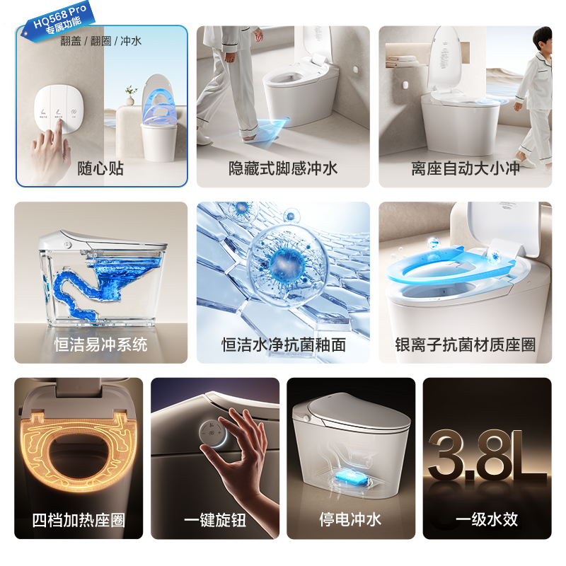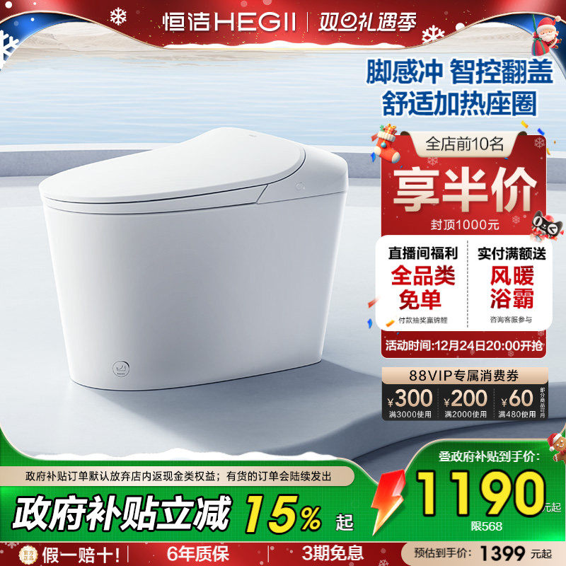 【抢直播间补贴】恒洁轻智能马桶自动抗菌佛山感应冲坐便器568P