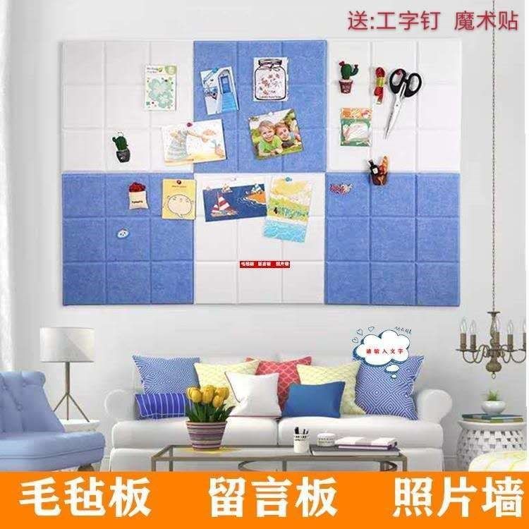 北欧创意九宫小方格毛毡幼儿园背景照片墙贴留言展示软木板公告栏