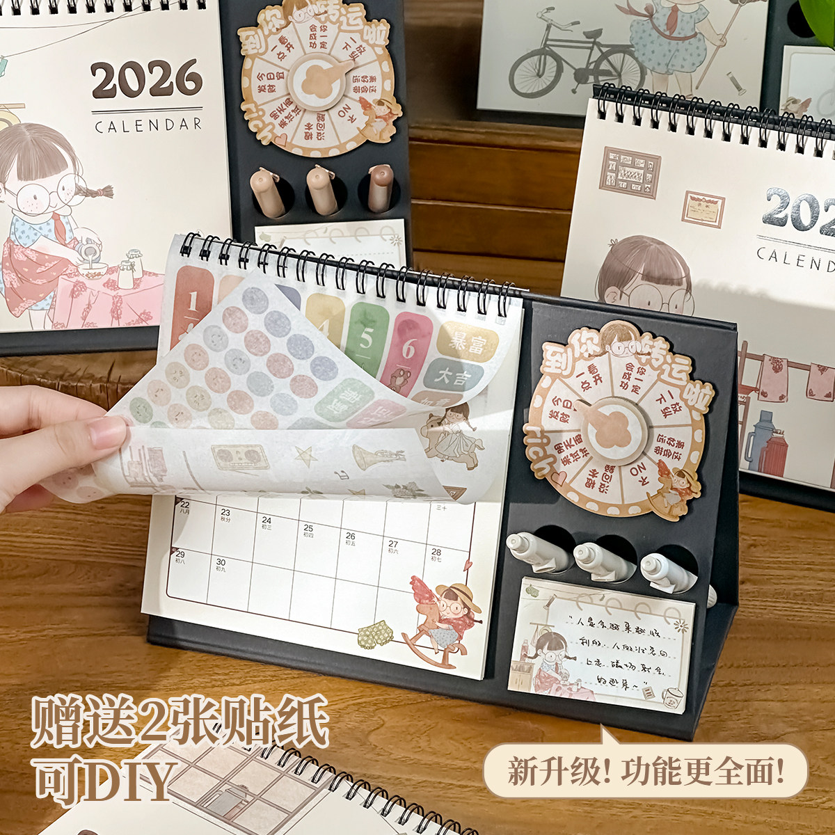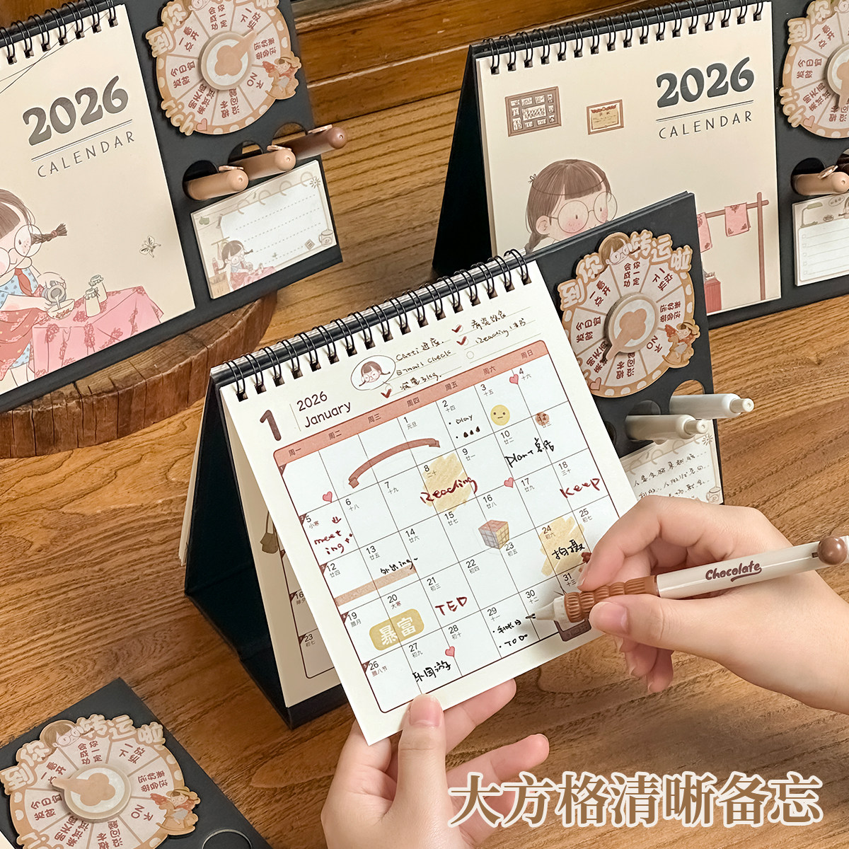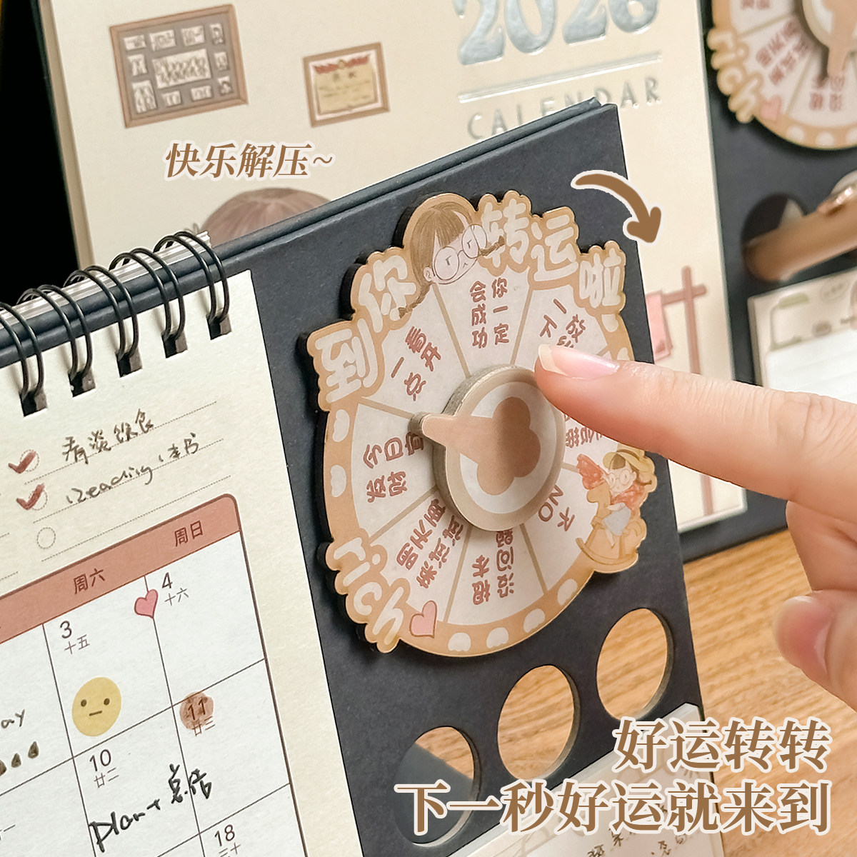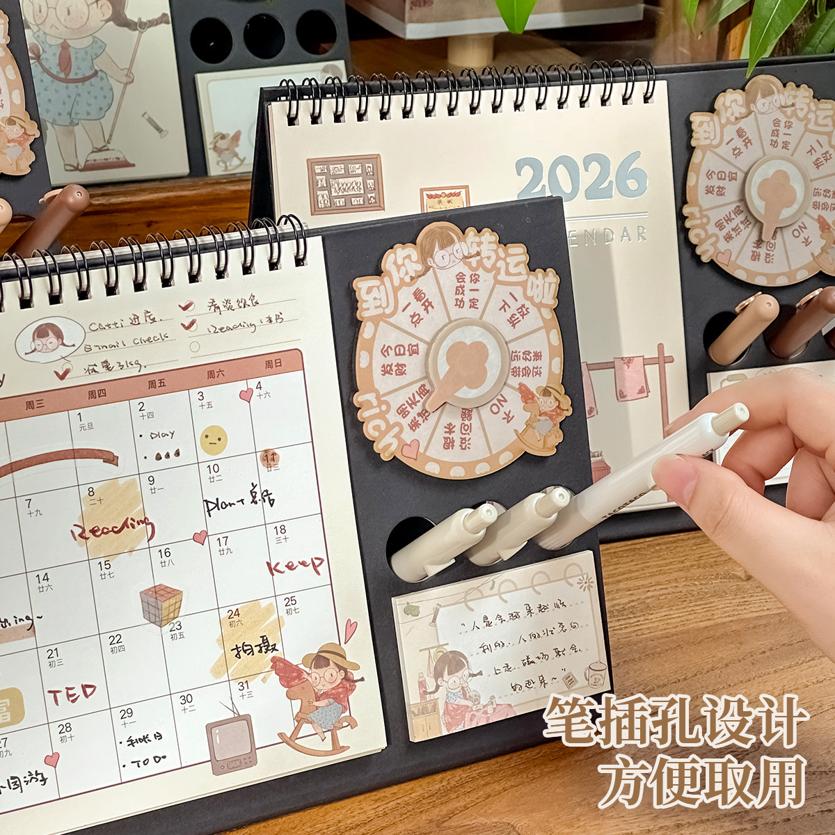 三年二班 2026麻球回归台历功能款创意转盘桌面收纳小摆件学生计划记事本教师办公室好物工位神器2025年台历K