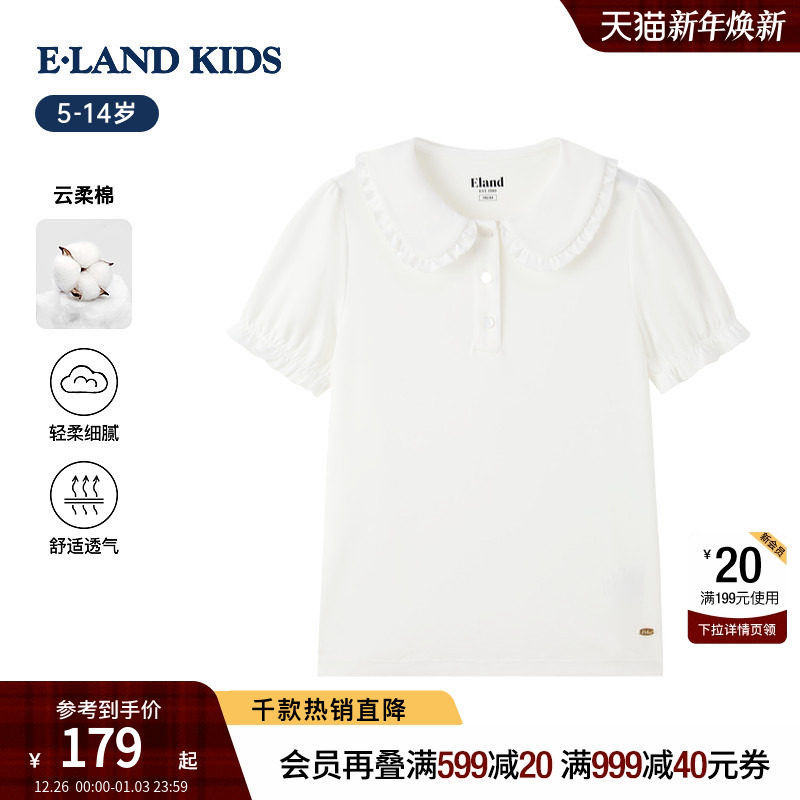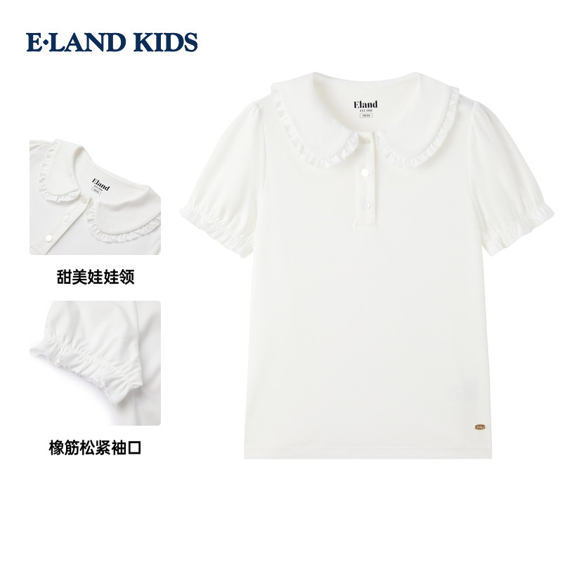 【云柔棉】eland kids衣恋童装女童T恤25年夏新品甜美娃娃领短袖