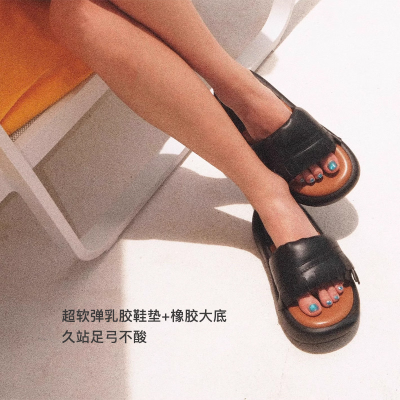 宝舒曼真皮拖鞋女外穿夏季新款软底凉鞋牛皮女鞋度假风平底凉拖