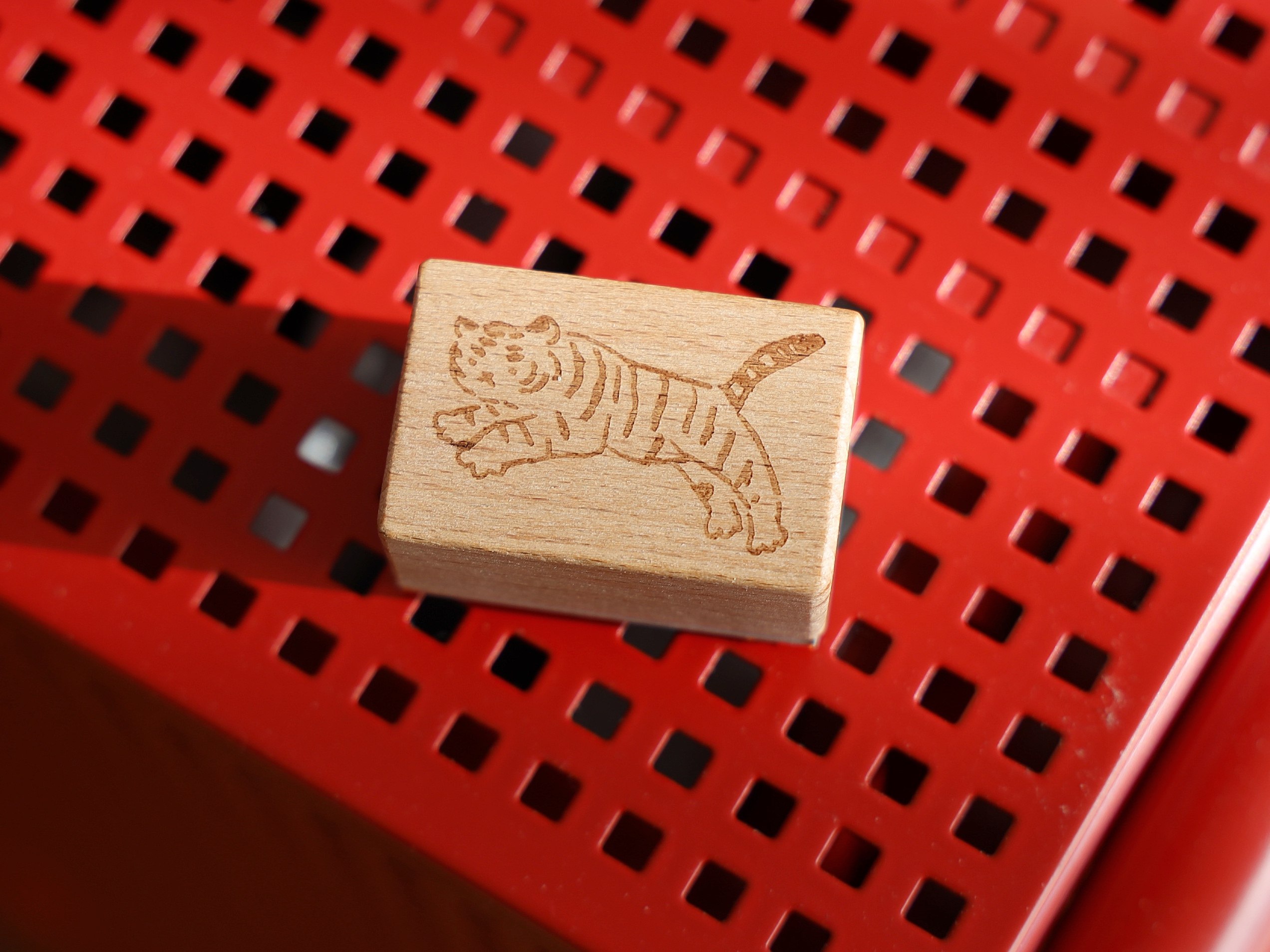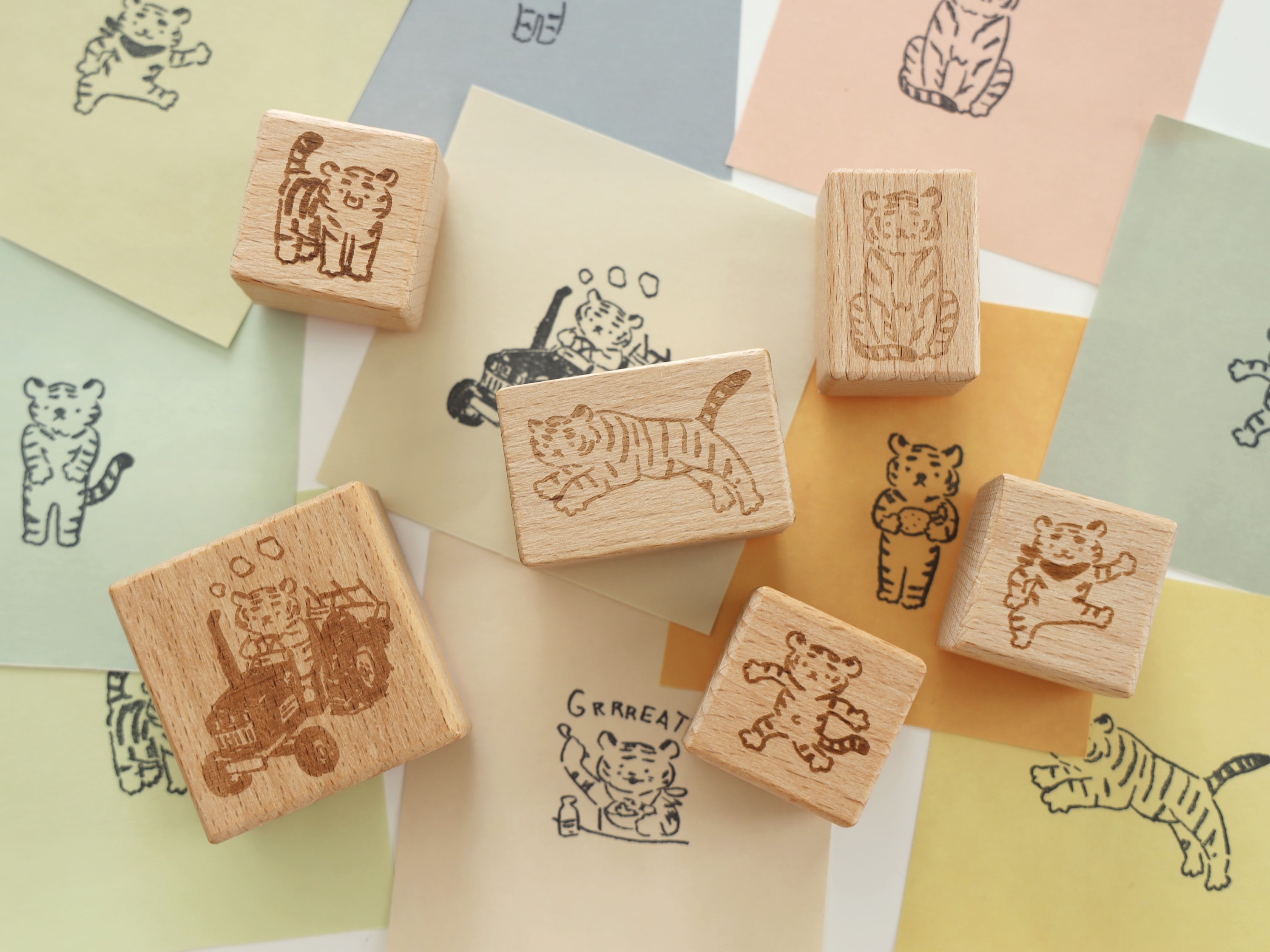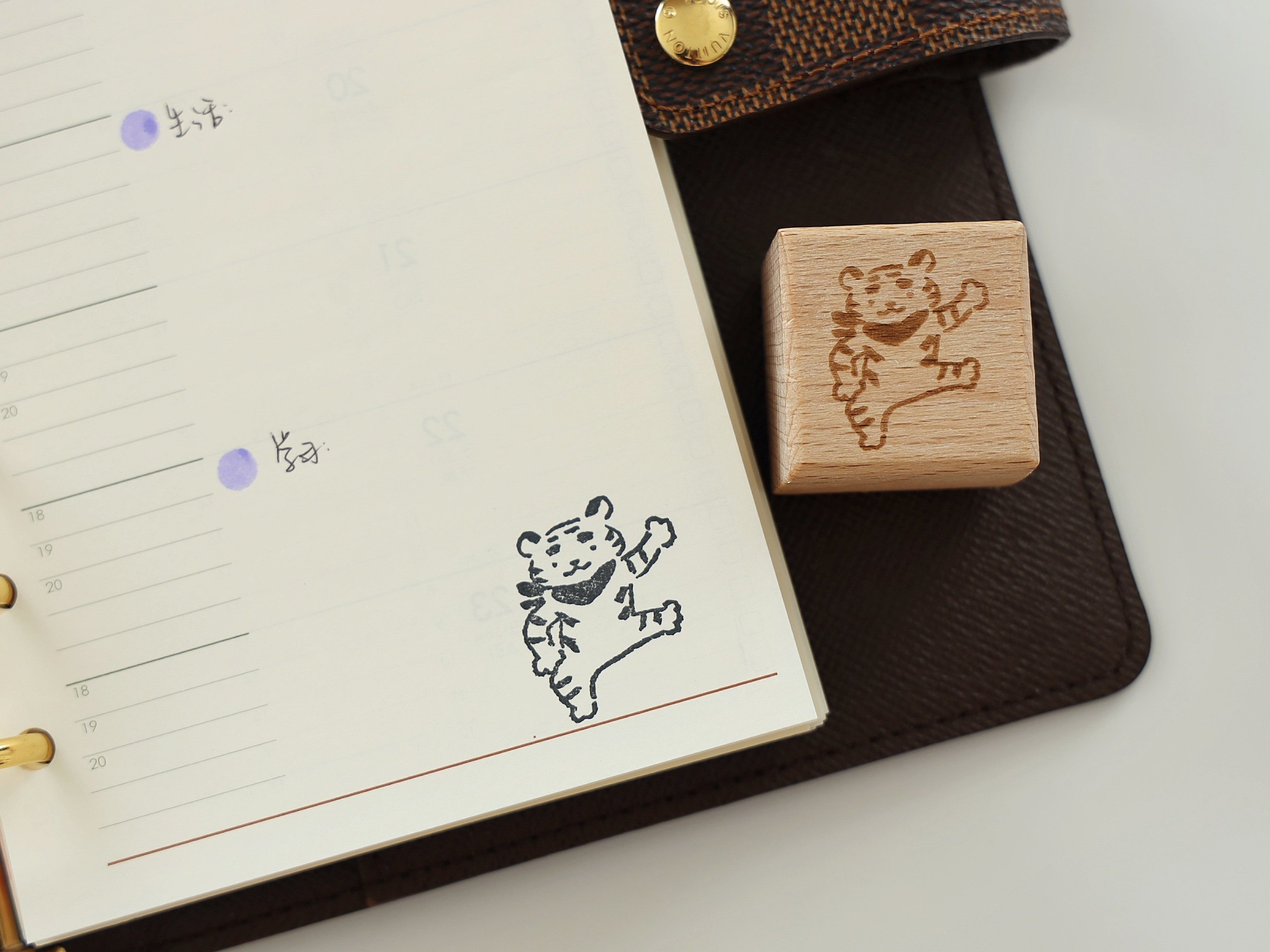 高旗将雄木质印章 丧萌可爱拖拉机老虎系列10款手帐素材 unimoco