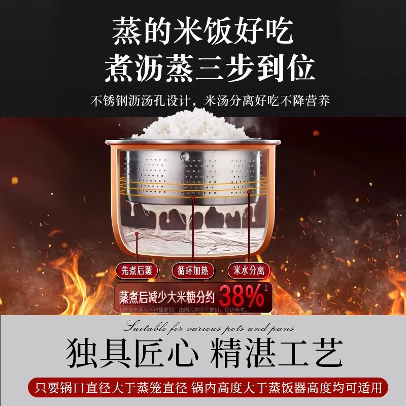 蒸饭器304不锈钢沥米饭蒸笼蒸架蒸米饭神器家用电饭煲米汤分离