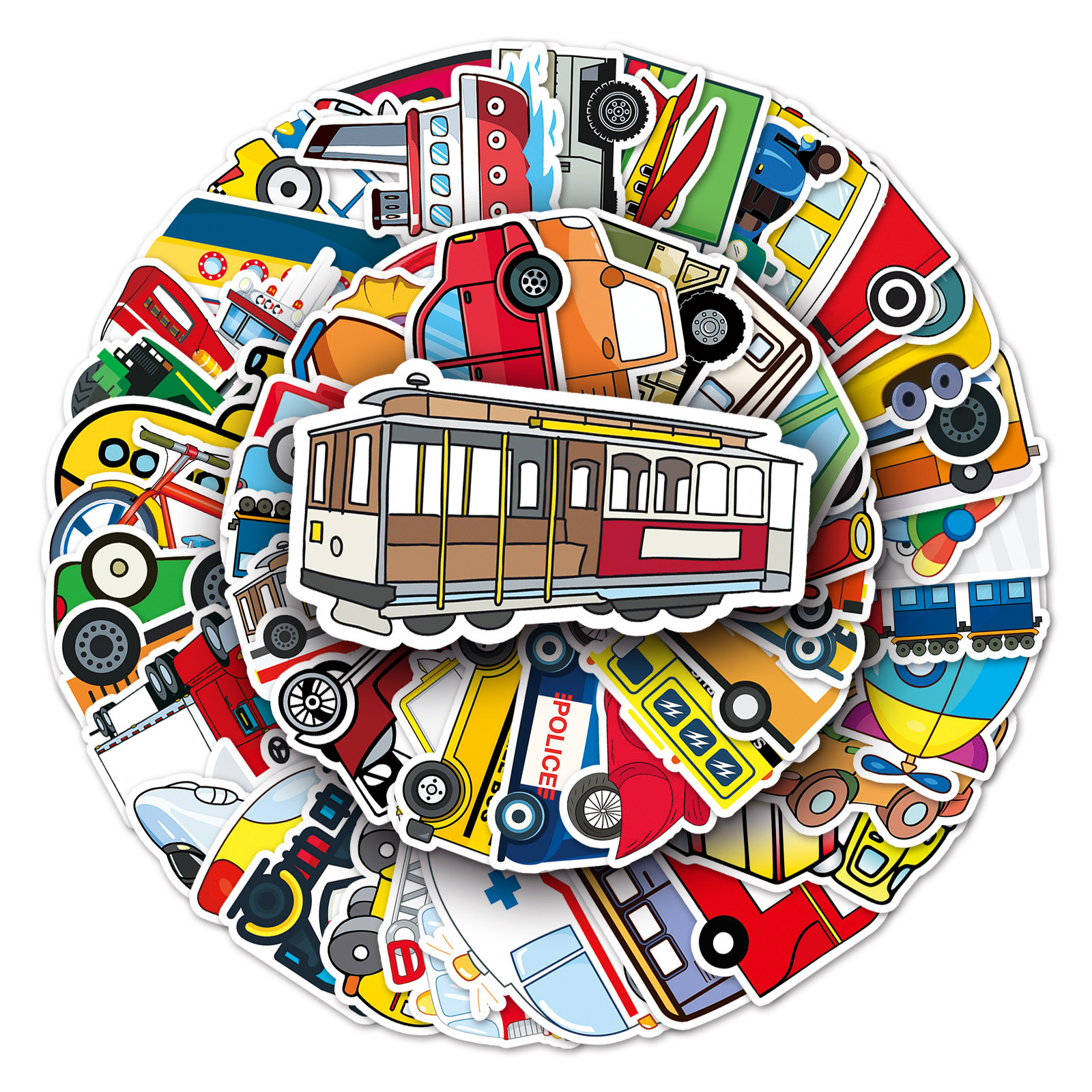 100张交通工具贴纸救护车公交车卡通创意素材装饰小贴画耳机壳吉他保温杯滑板车手账diy摩托车笔记本防水贴纸