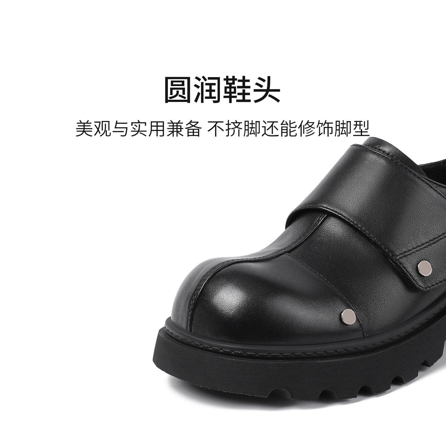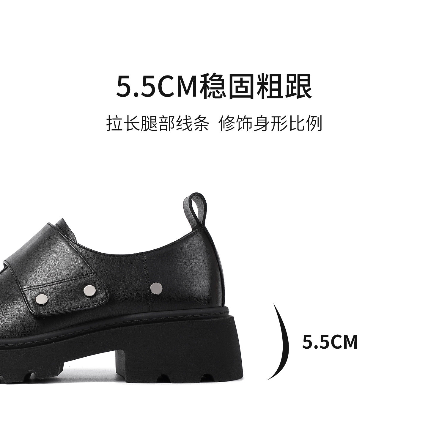 董洁同款真美诗自由之歌柔软水洗牛皮小皮鞋粗跟乐福鞋女男女同款