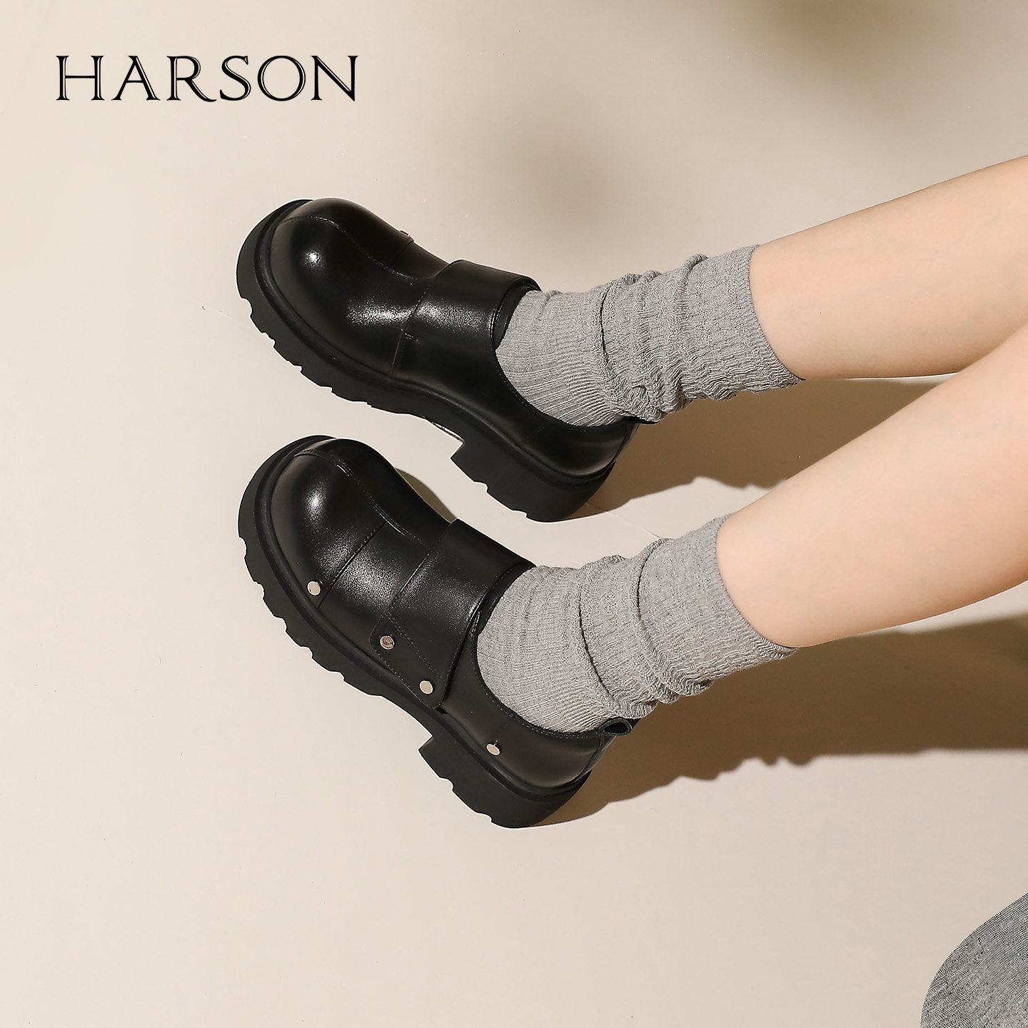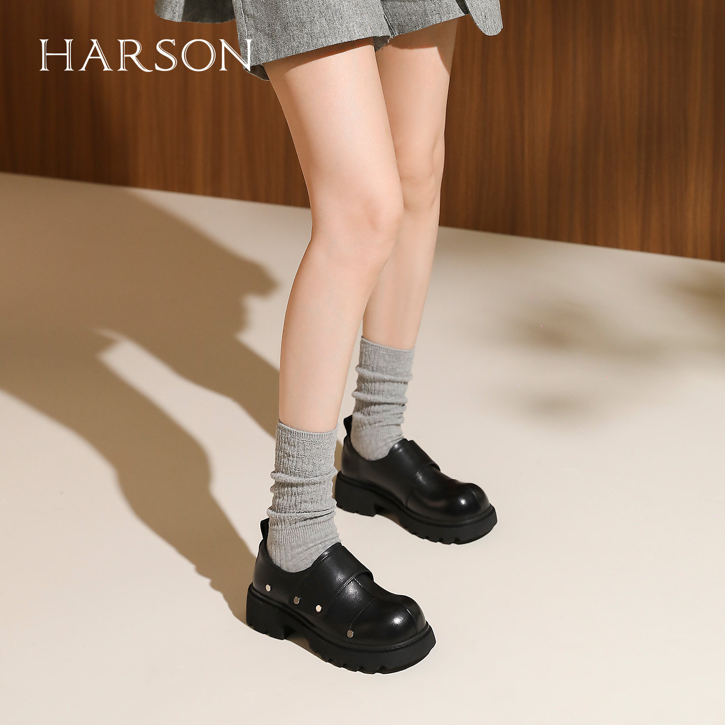 哈森休闲乐福鞋女2025秋季新款粗跟增高圆头时尚单鞋HWL250135