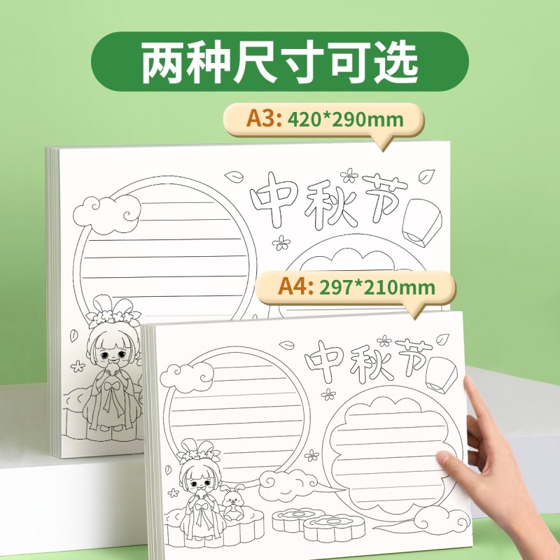 手抄报模板小学生大全万能神器半成品一年级国庆节中秋节板报读书小报线稿专用纸镂空套装绘画画图节日分类