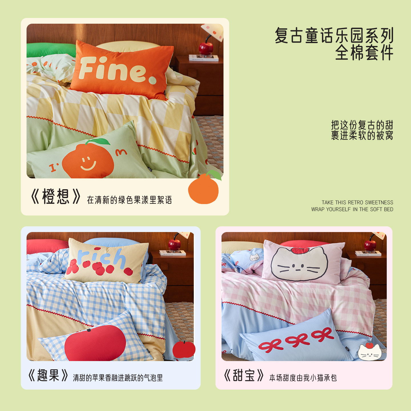 TeenieWeenie全棉水洗棉四件套100纯棉被套床单床笠款床上三件套4