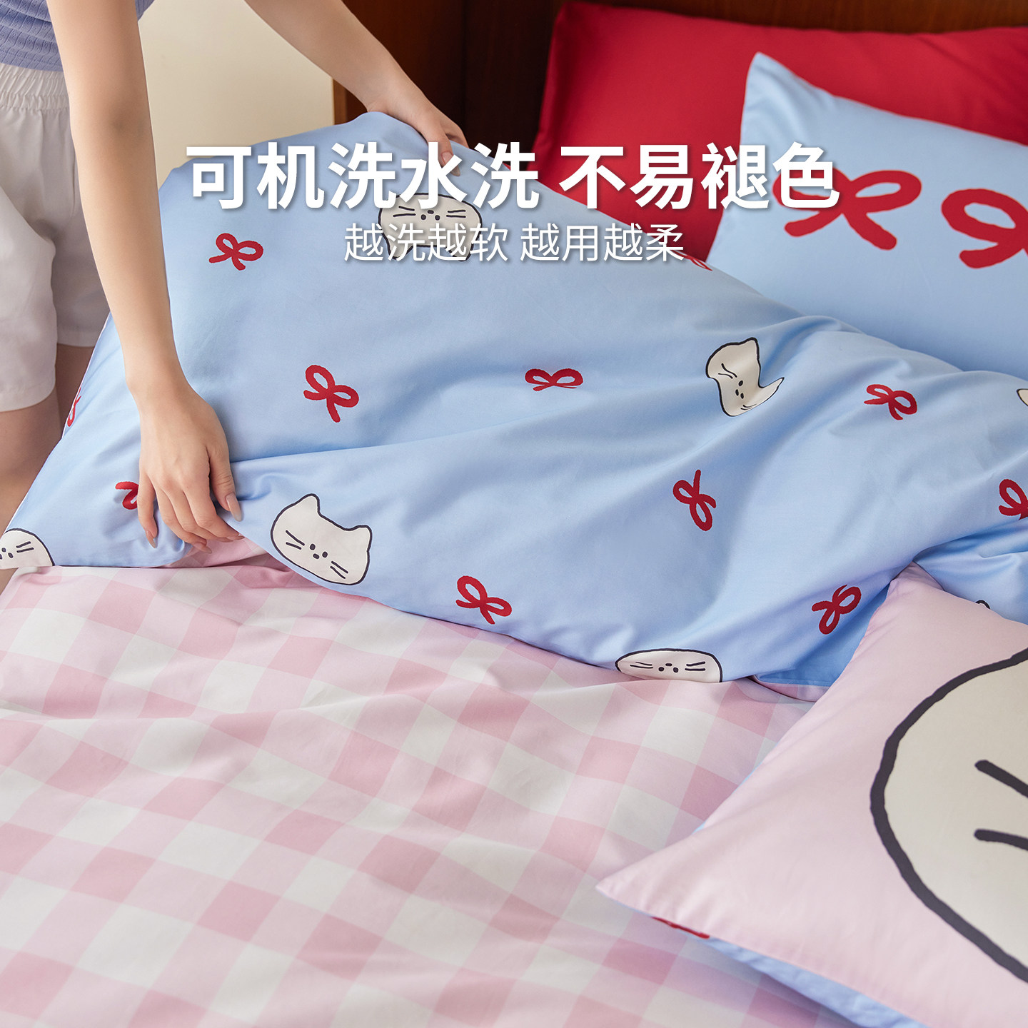 无印良品全棉四件套学生宿舍纯棉卡通儿童被套床单三件套床上用品