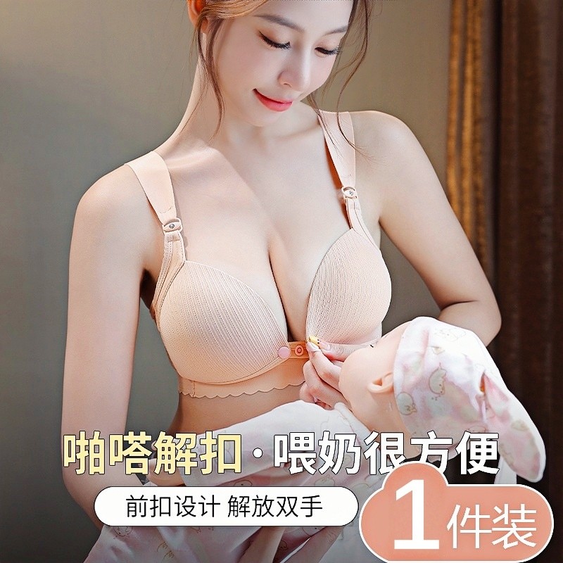 孕妇哺乳内衣聚拢防下垂产后喂奶怀孕期专用前开扣大码文胸罩前扣