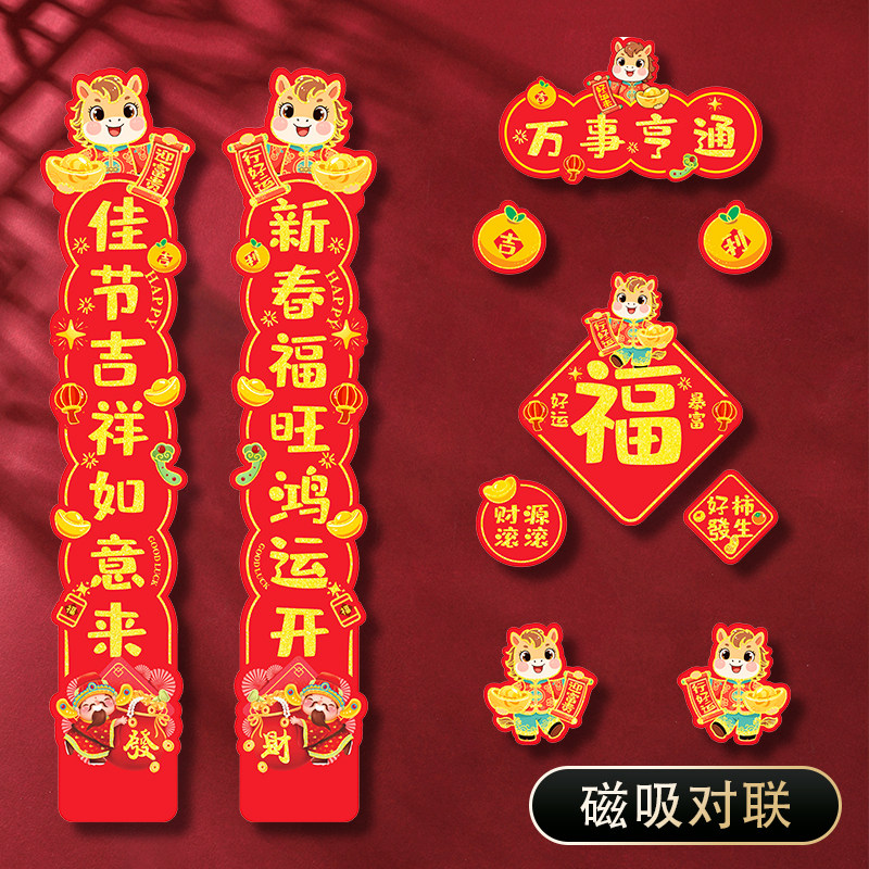 2026年新款卡通风磁铁对联高档精美礼盒送礼或自用更显高雅时尚免胶不伤门贴福字春节过年布置春联新年装饰品
