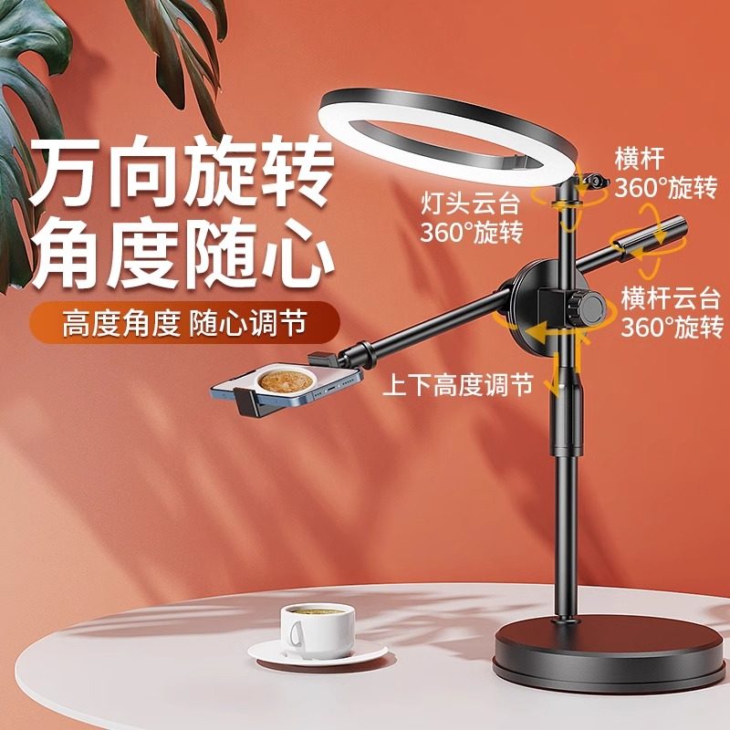 专业桌面俯拍手机支架2024新款直播三脚架录视频vlog拍美食神器专用书法网课开箱拍摄补光灯拍照设备架子灯光