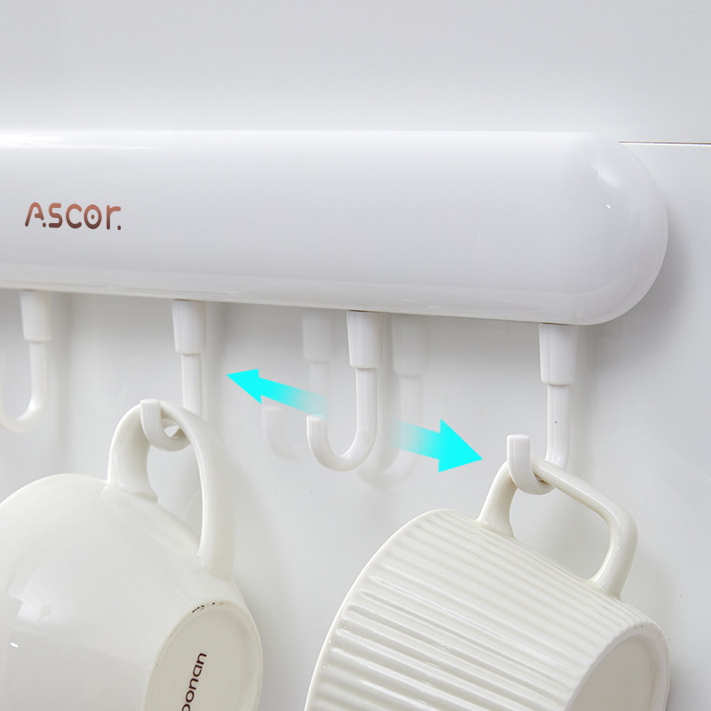 橱柜门后挂钩一排可滑动轨道免打孔粘挂杆神器勺子铲子厨具收纳架