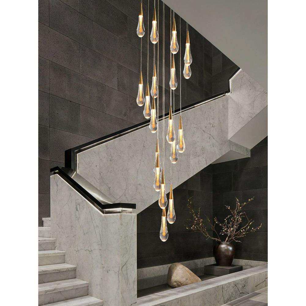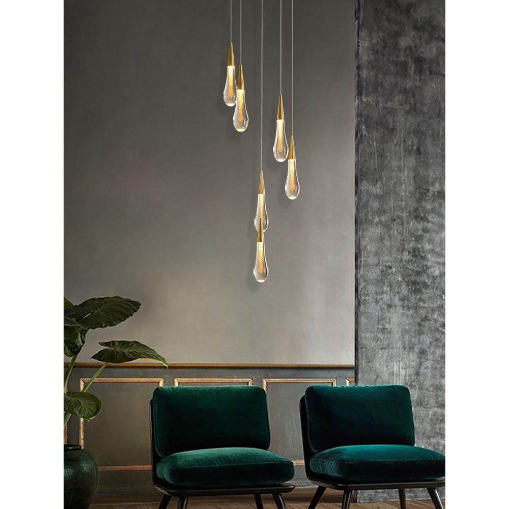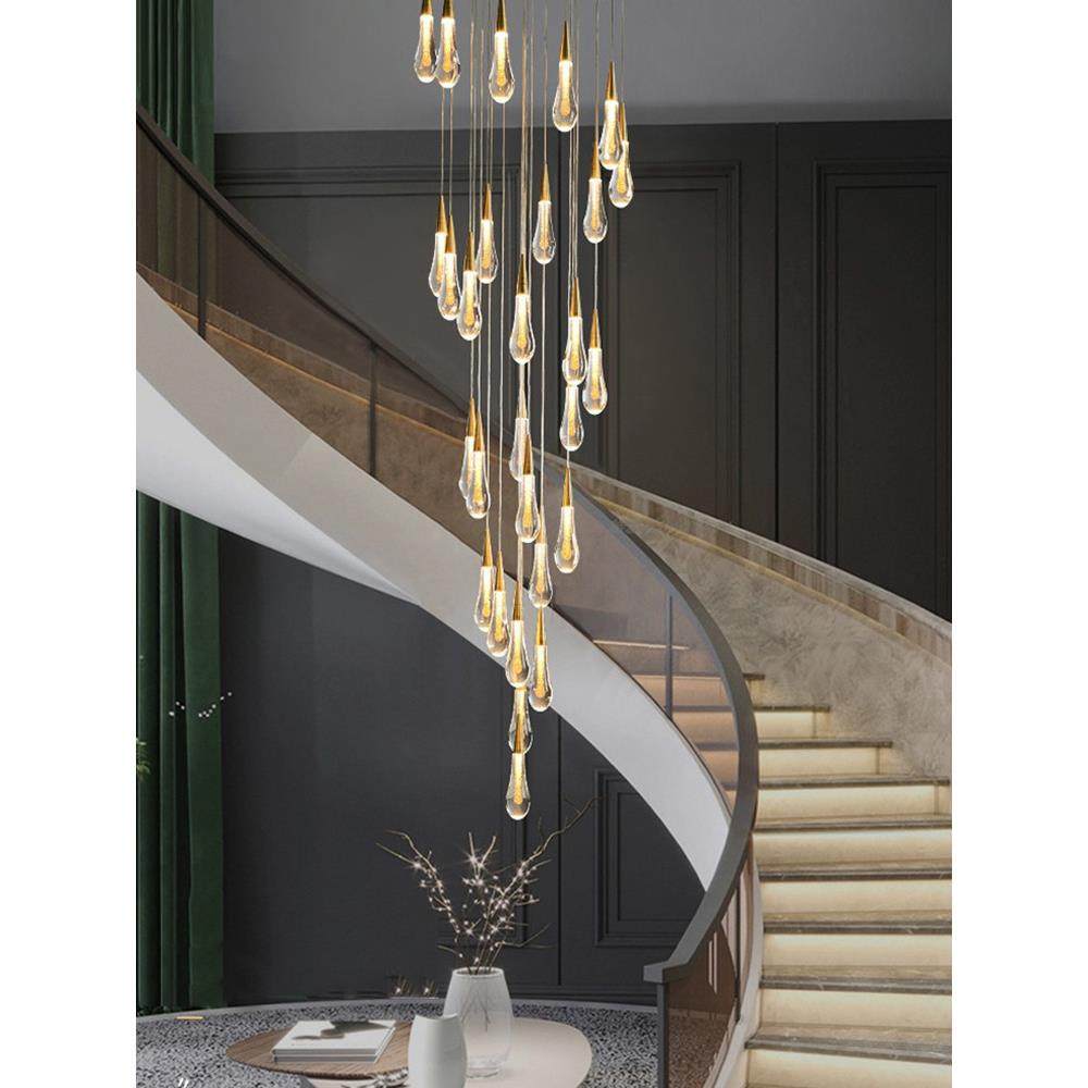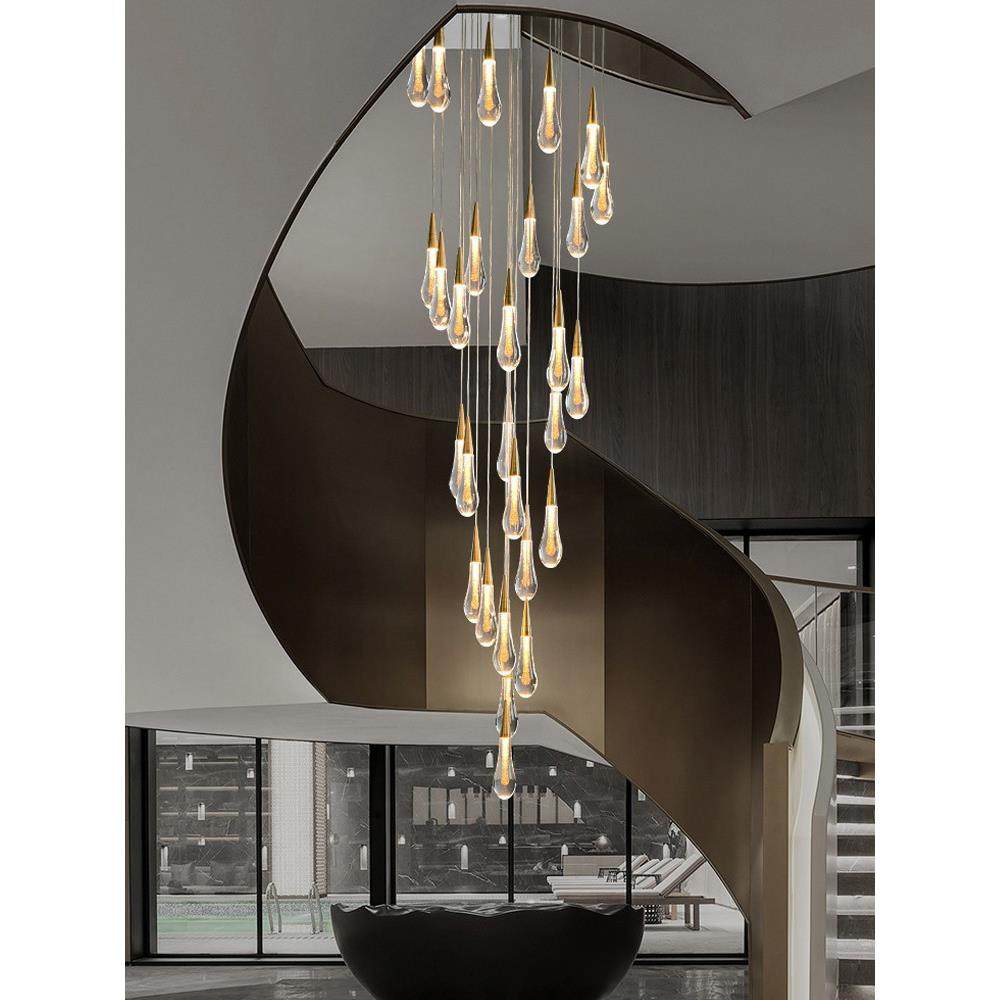 2024新款水滴美式楼梯吊灯挑空旋转别墅loft挑高专用小复式长吊灯