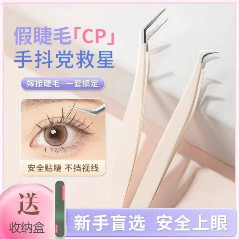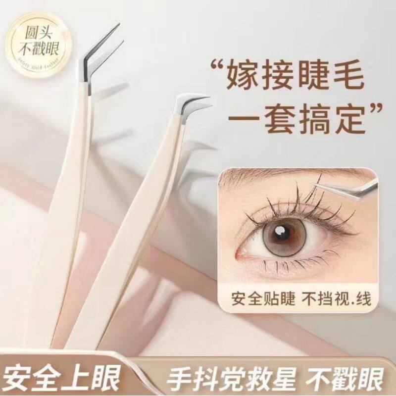 高精密假睫毛镊子嫁接初学者鹰嘴夹睫毛镊子圆头金羽夹入门工具
