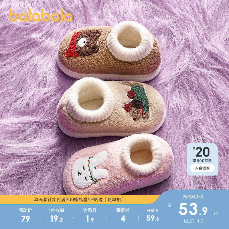 巴拉巴拉童鞋儿童拖鞋男女童2025年新款冬外穿室内加绒家居包跟鞋
