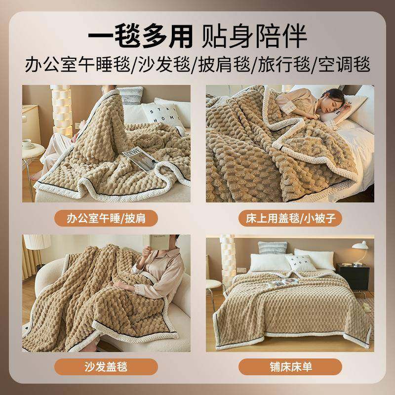 毛毯冬季加厚珊瑚绒毯子加绒保暖床单绒毯被子午睡办公室沙发盖毯
