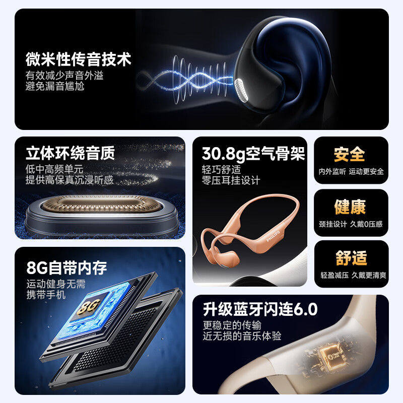 飞利浦TAQ4320骨传导耳机开放式不入耳跑步运动骑行蓝牙耳机新款