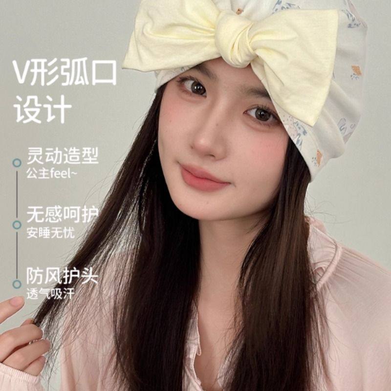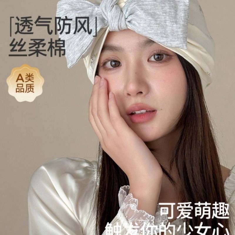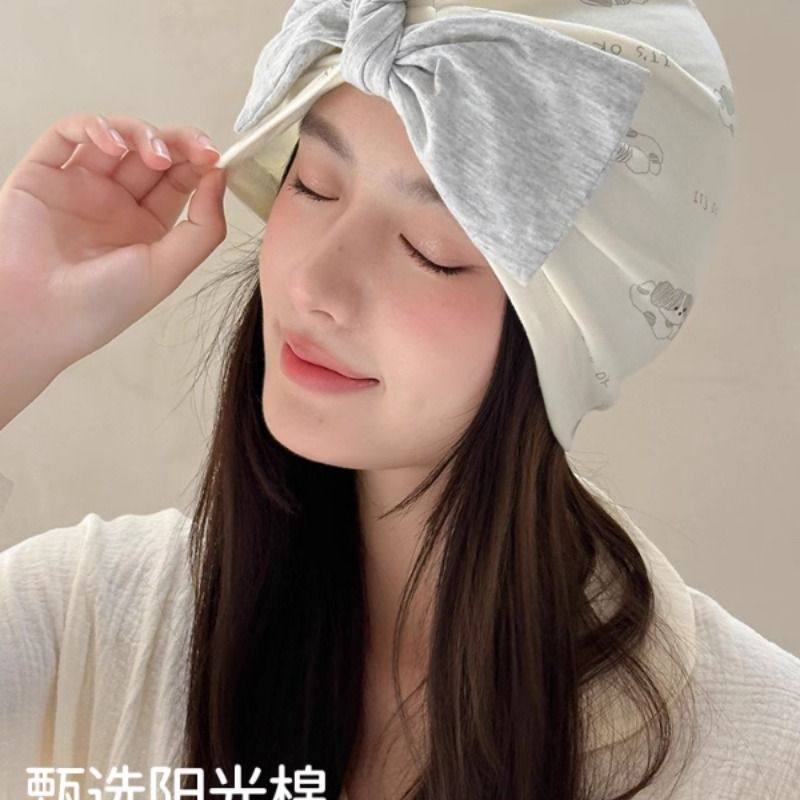 月子帽秋纯棉产妇帽防头风孕妇帽子可爱蝴蝶结月子发带头巾10月秋