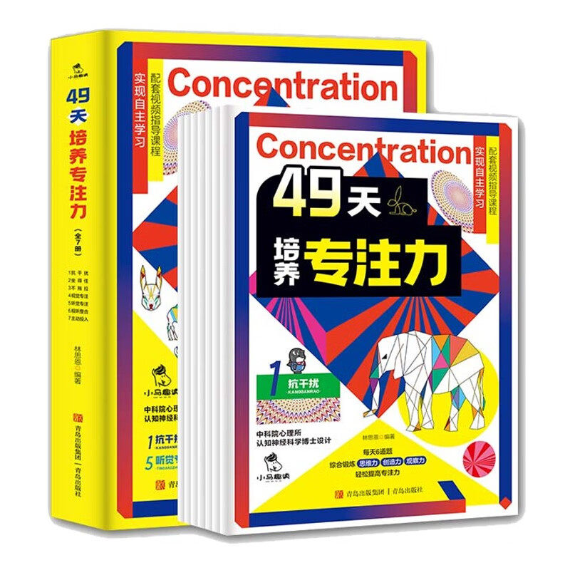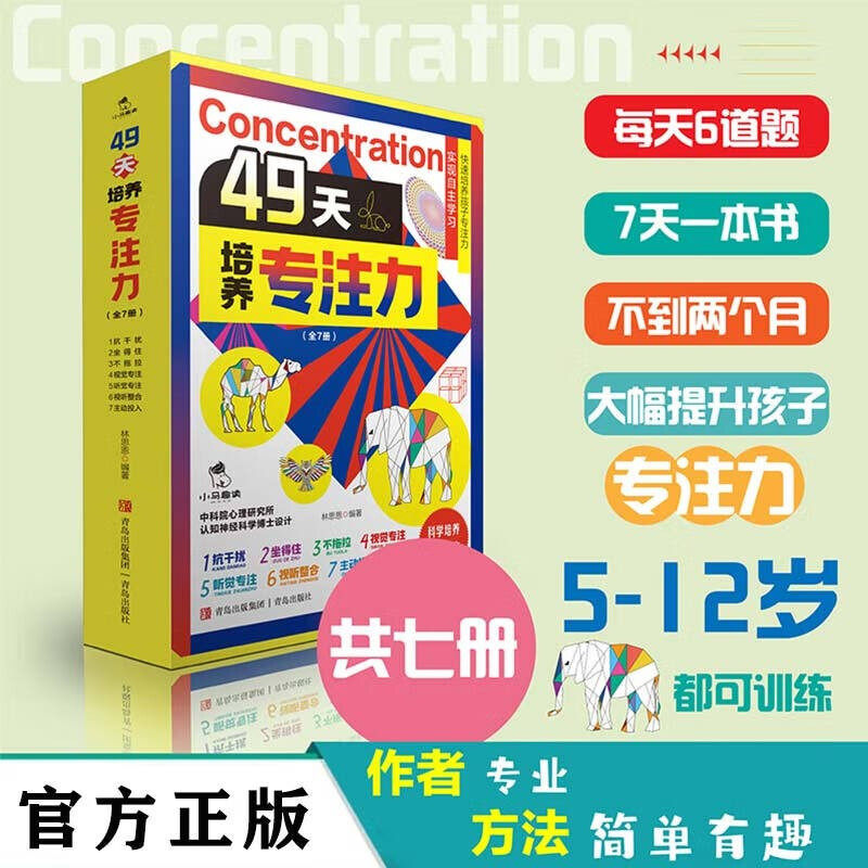 49天培养专注力全套7册 专注力训练注意力训练培养游戏书大挑战找不同提高专注力神器青少年学生儿童阅读的课外书籍
