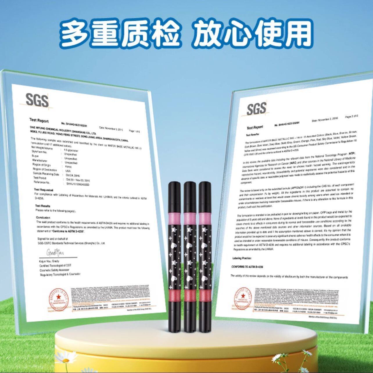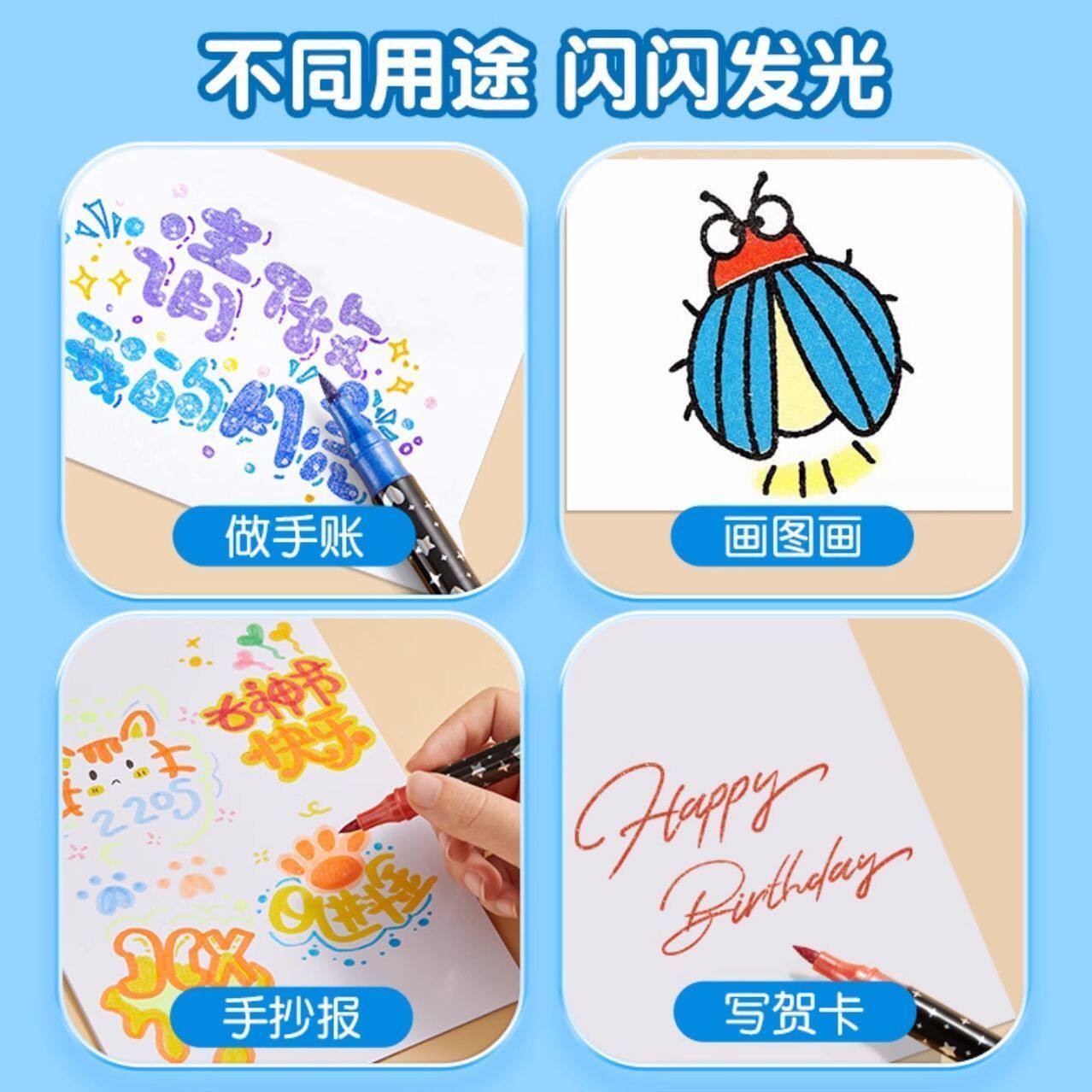 库洛米双头闪光丙烯马克笔软头马克笔笔包双色带流光闪粉水彩笔啫喱荧光笔珠光彩绘画亮片彩笔儿童小学生手账