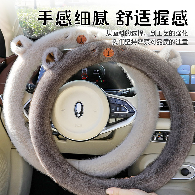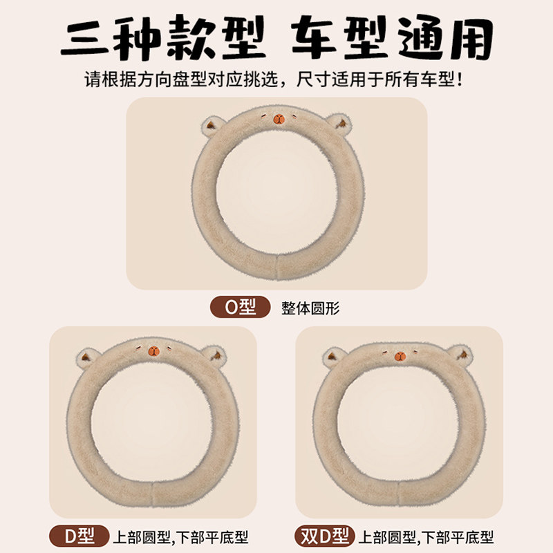 汽车方向盘套冬季毛绒O型D型雪貂绒保暖聚温车把套防滑可爱粉色