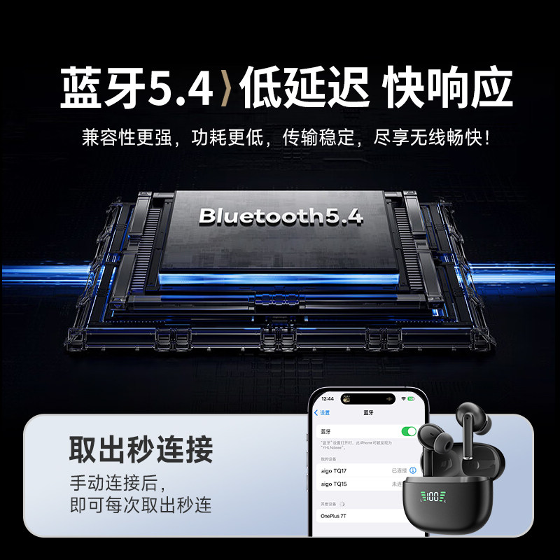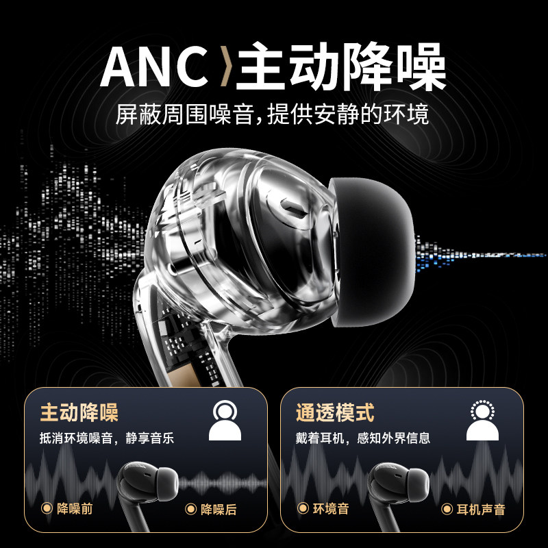ANC主动降噪/ENC双麦通话降噪/智能数显电量