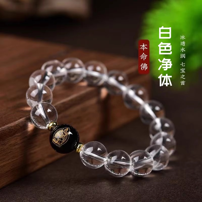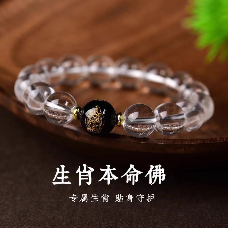 白水晶本命年手串男女十二生肖玛瑙本命佛转运珠手链同款饰品净体