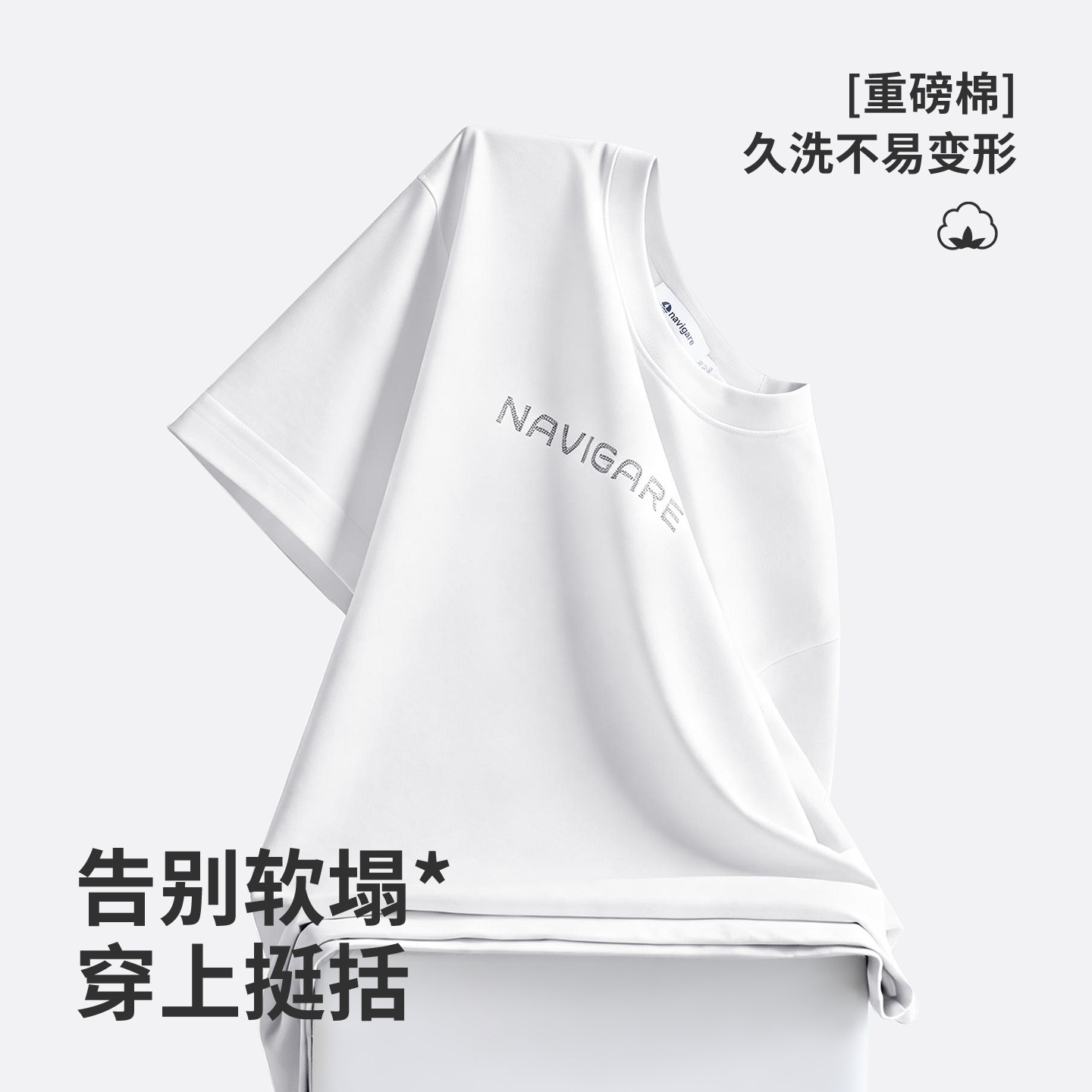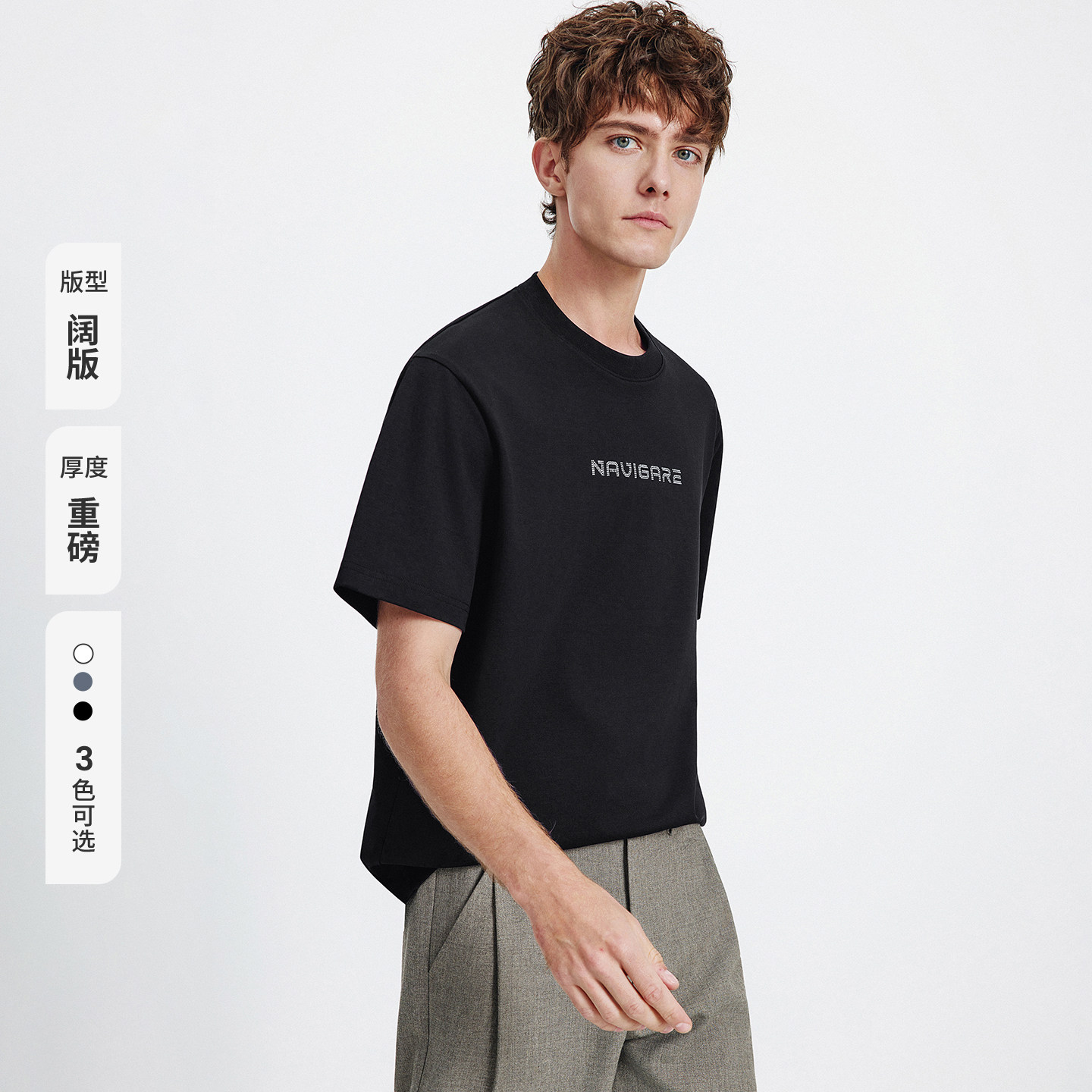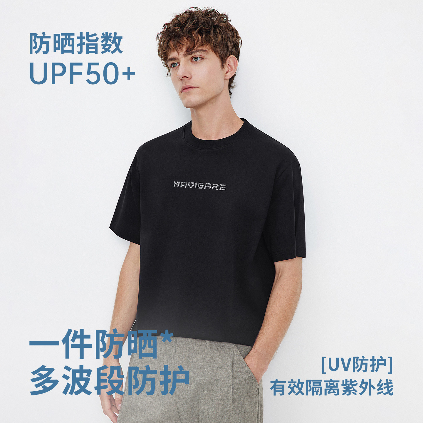[防晒]Navigare意大利小帆船黑色短袖T恤2026夏季休闲圆领套头衫