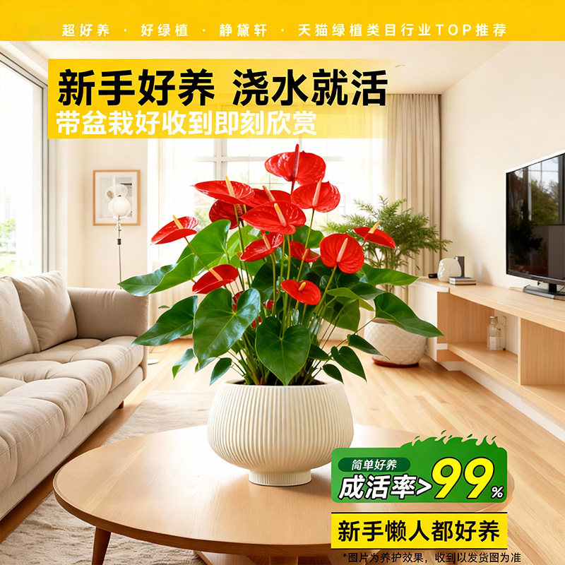 特级红掌盆栽鸿运当头客厅卧室书房盆栽净化空气新手好养送礼绿植