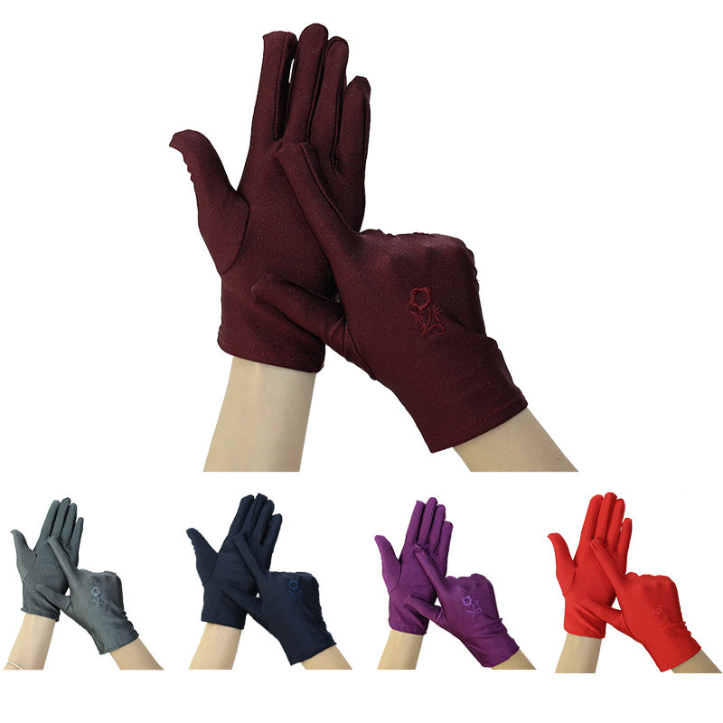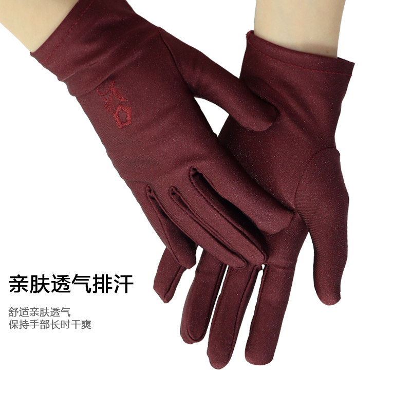 春秋薄款防晒手套跳广场舞冰丝透气弹力骑行开车女士刺绣礼仪手套