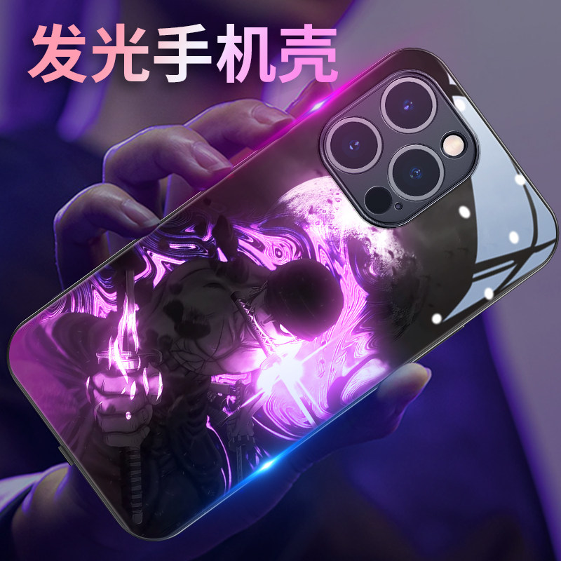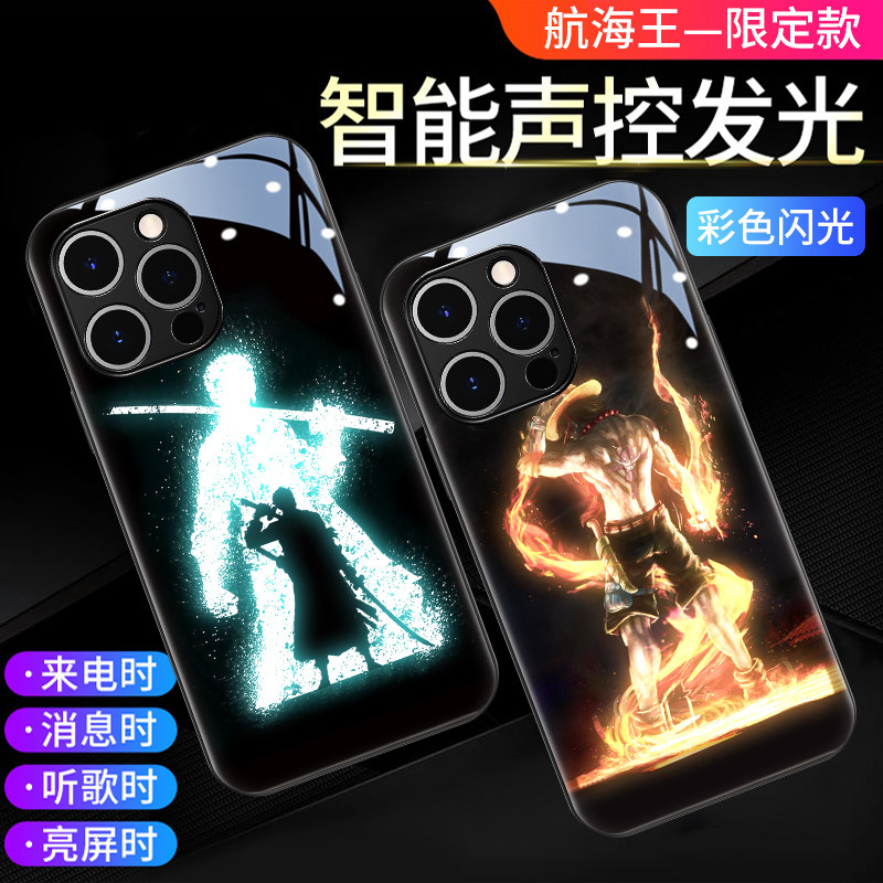 海贼王适用17苹果16promax手机壳新款iphone15plus超火12mini男款13来电发光xr玻璃14路飞78索隆11动漫联名xs