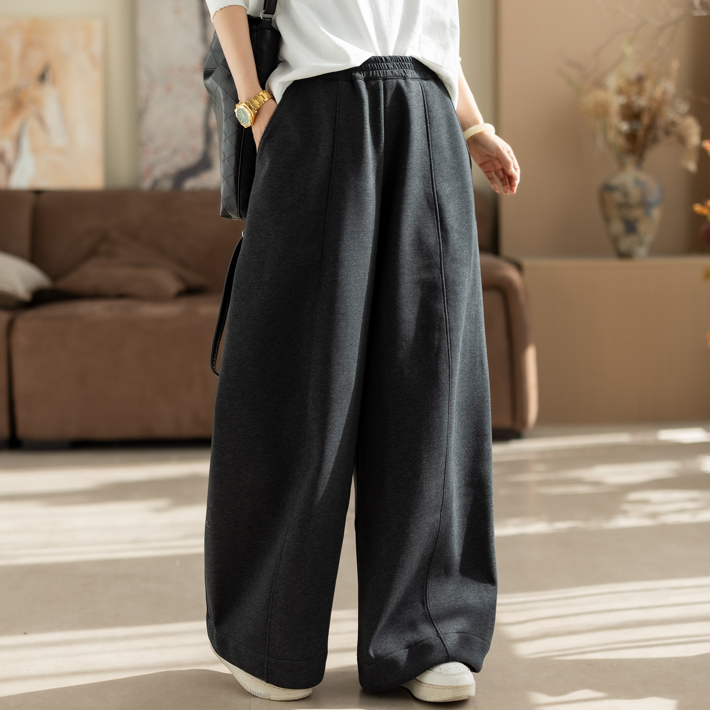 糯米裤女羊羔绒垂坠感软糯加绒加厚秋冬韩系慵懒松弛感阔腿裤TB