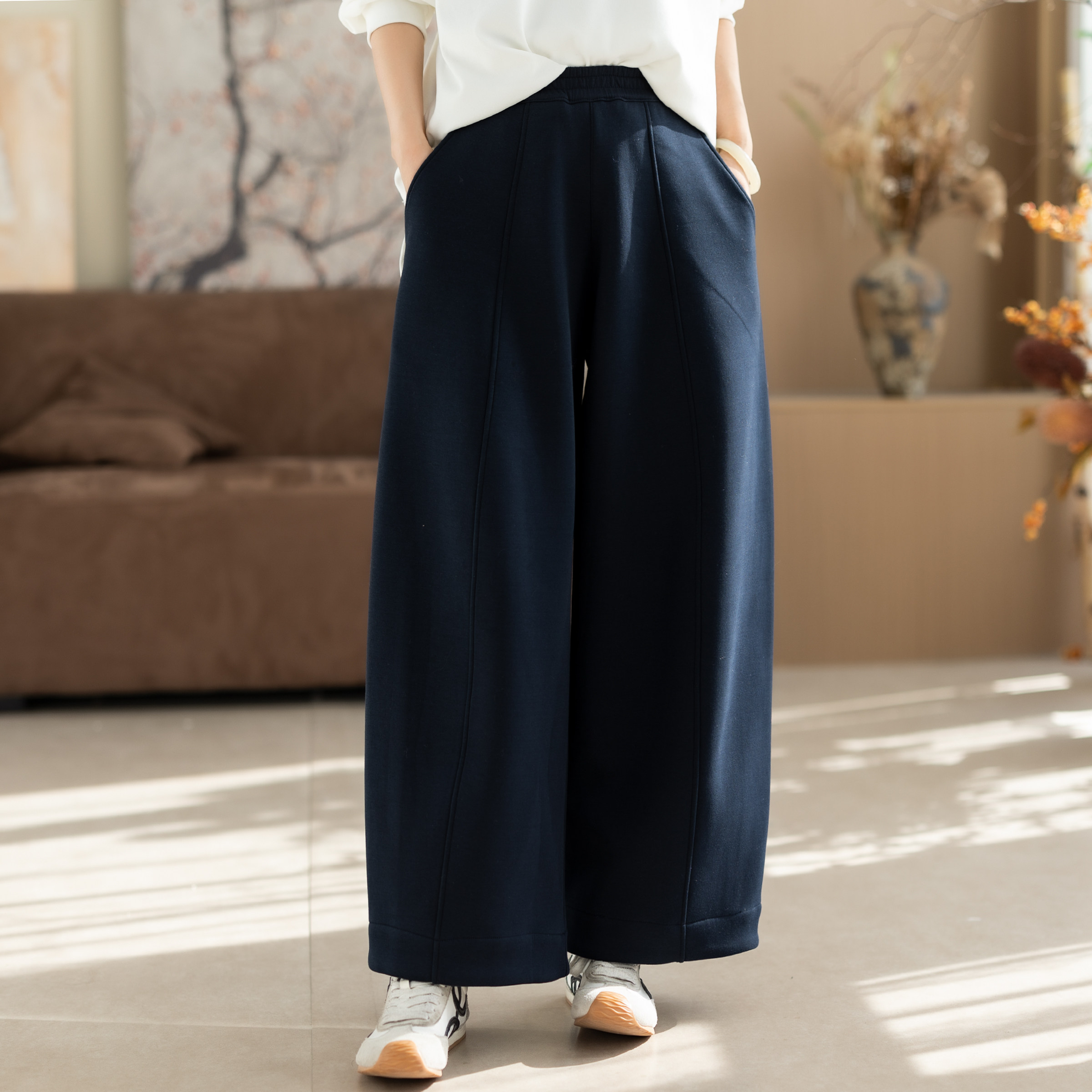 咖咪羽休闲裤女冬装加绒新款加厚宽松百搭长裤流行纯色女装阔腿裤