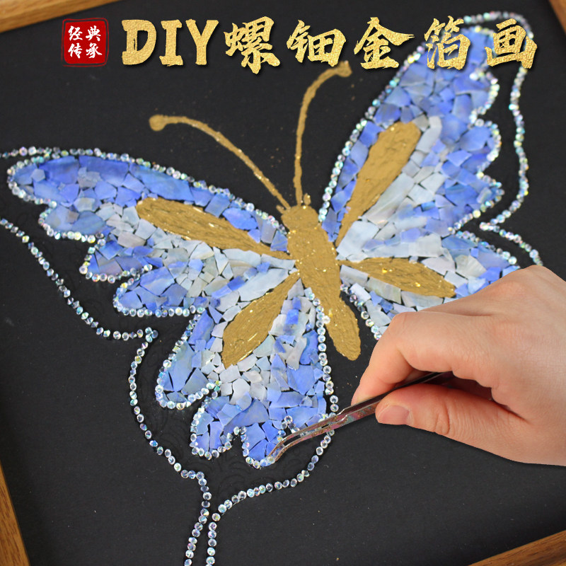 螺钿蝴蝶贝壳画手工DIY全套材料包创意礼物活动团建鲍鱼片相框画