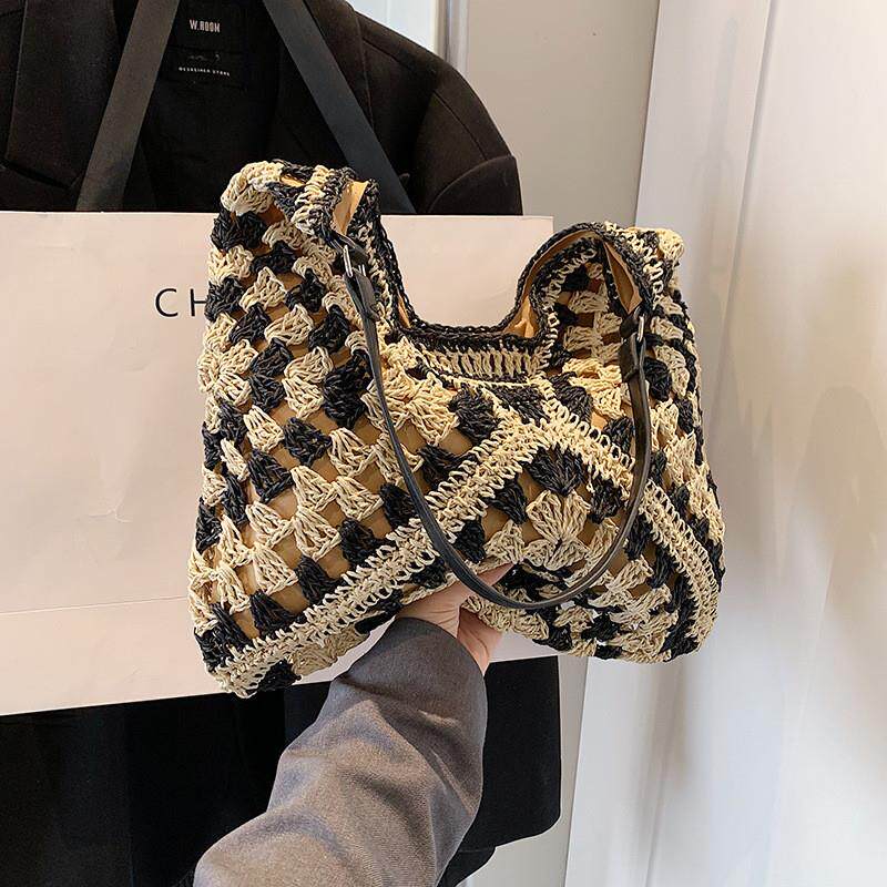 大容量包包2024新款女包夏天流行爆款草编包时尚单肩包水桶包
