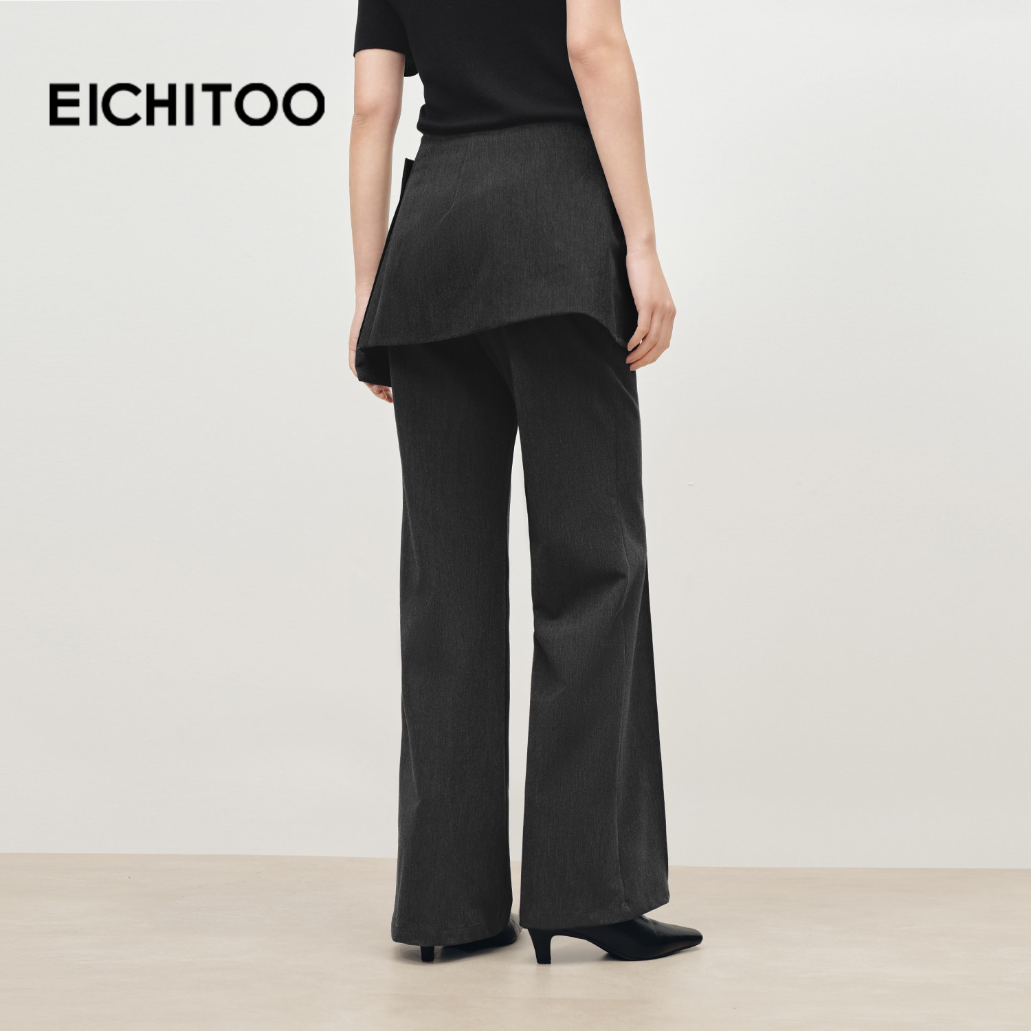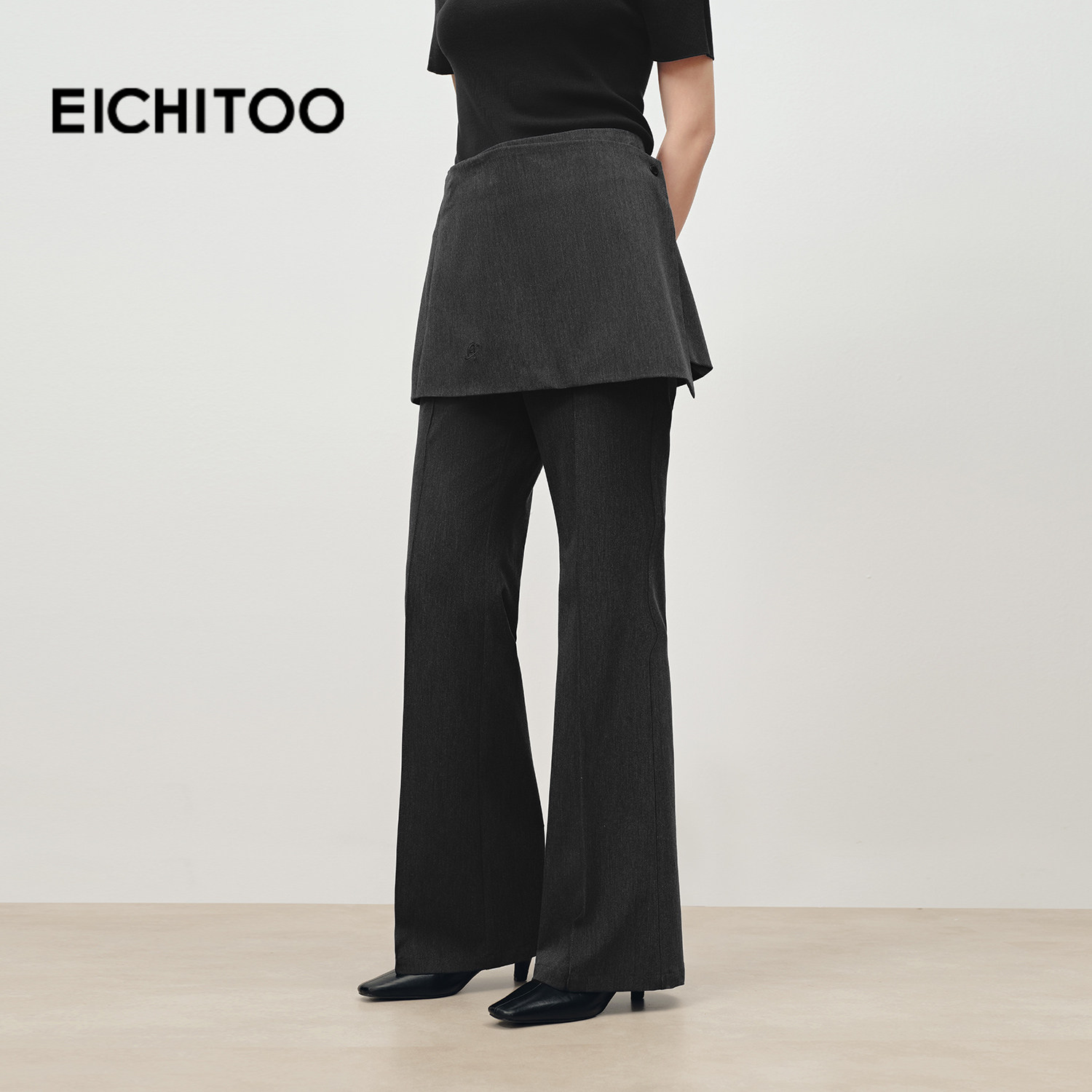 爱居兔显瘦设计感两穿休闲裤裙裤女2025年秋季新款通勤时尚喇叭裤