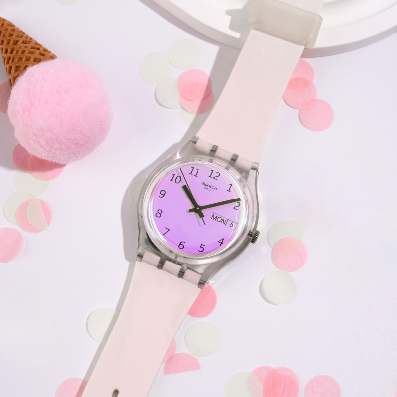 Swatch斯沃琪瑞士手表蓝粉炫彩初高中学生日历石英腕表圣诞礼物