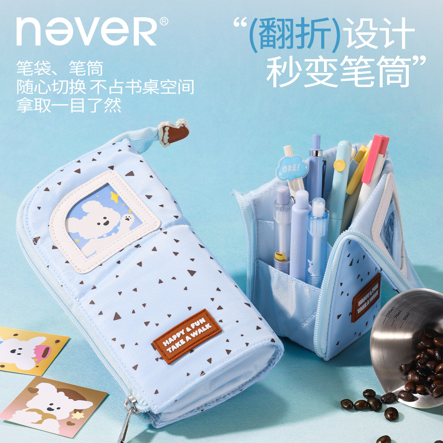 never咖啡小狗笔袋2026新款高颜值ins风站立式创意分层笔袋学生收纳包