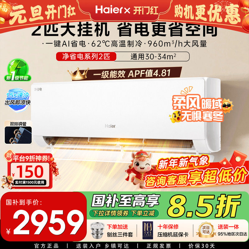 海尔空调净省电官方新一级能效2匹变频冷暖两用家用卧室挂机48E1