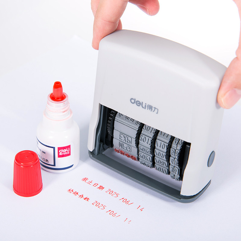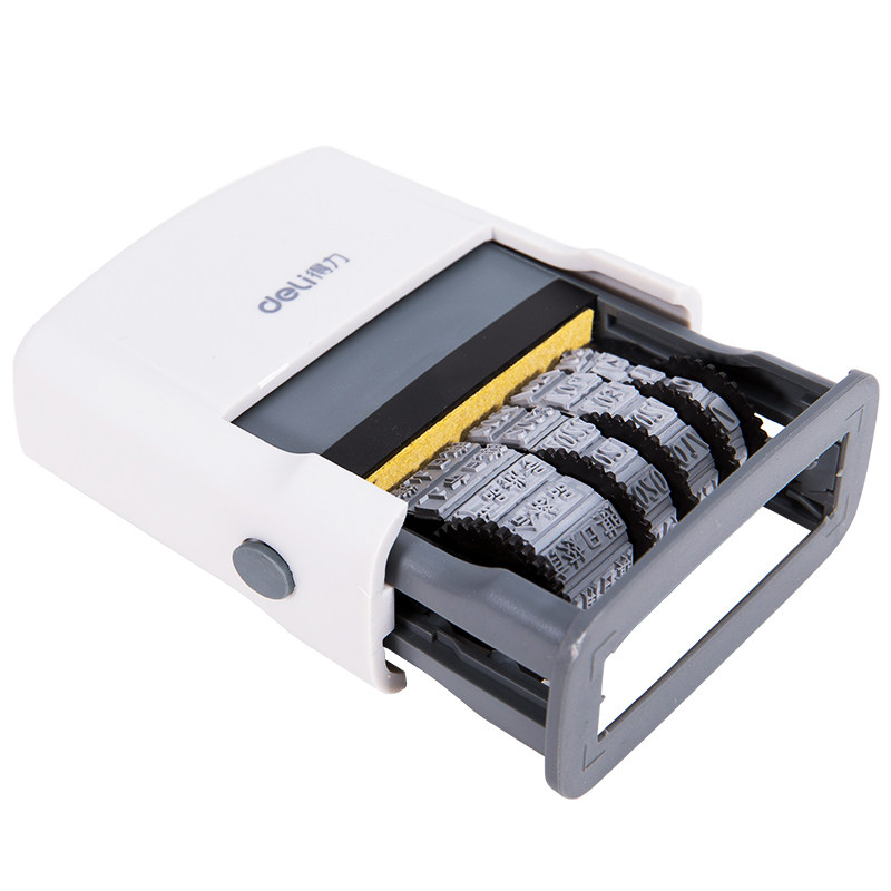 得力日期印数字文本可调年月日转轮内置印台功能丰富珠帘隔断砖夹