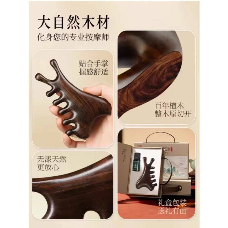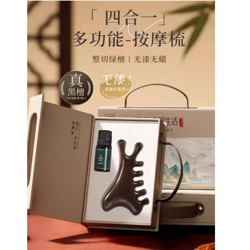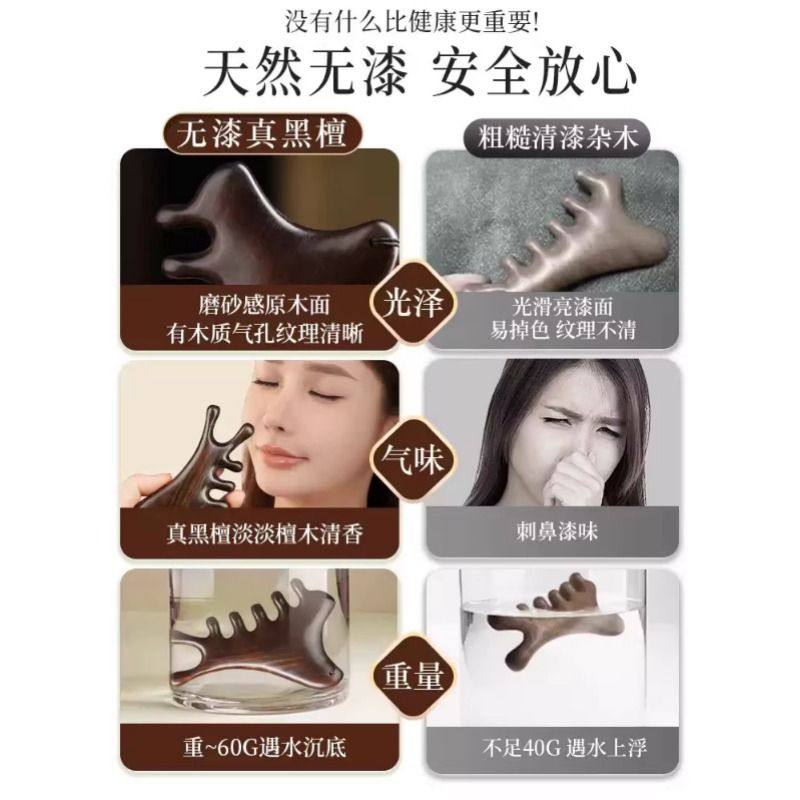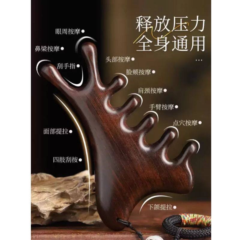 四合一多功能黑檀木梳子按摩头皮经络梳脸部刮痧头部头疗疏通神器