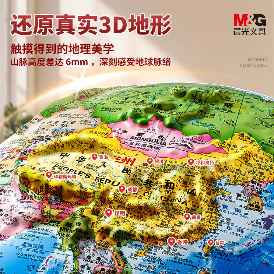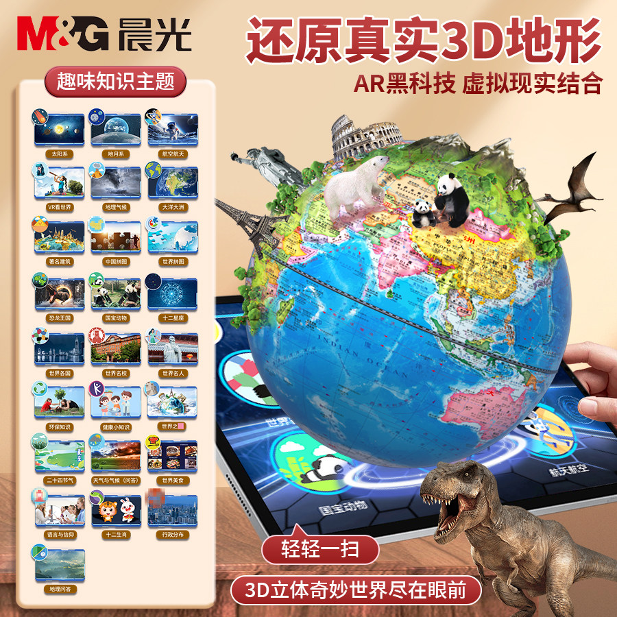 晨光新品浮雕地球仪3d立体凹凸磁悬浮旗舰店正版小学生初中生用ar智能地形生日六一儿童节礼物摆件轻奢高档灯