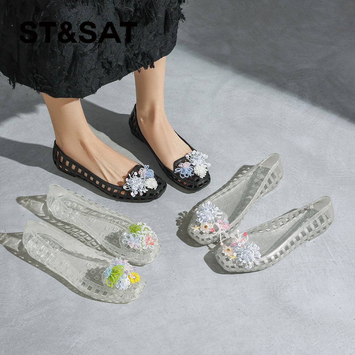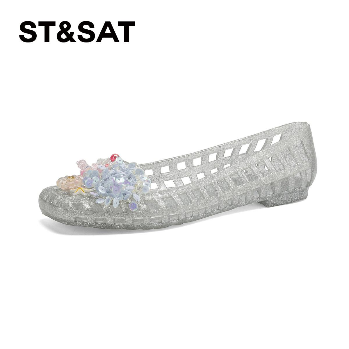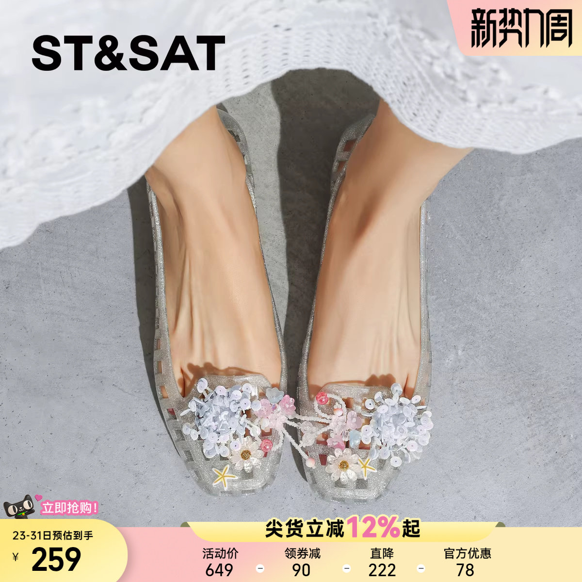 星期六气质镂空罗马凉鞋女鞋2026春夏新款透明果冻水晶鞋平底单鞋